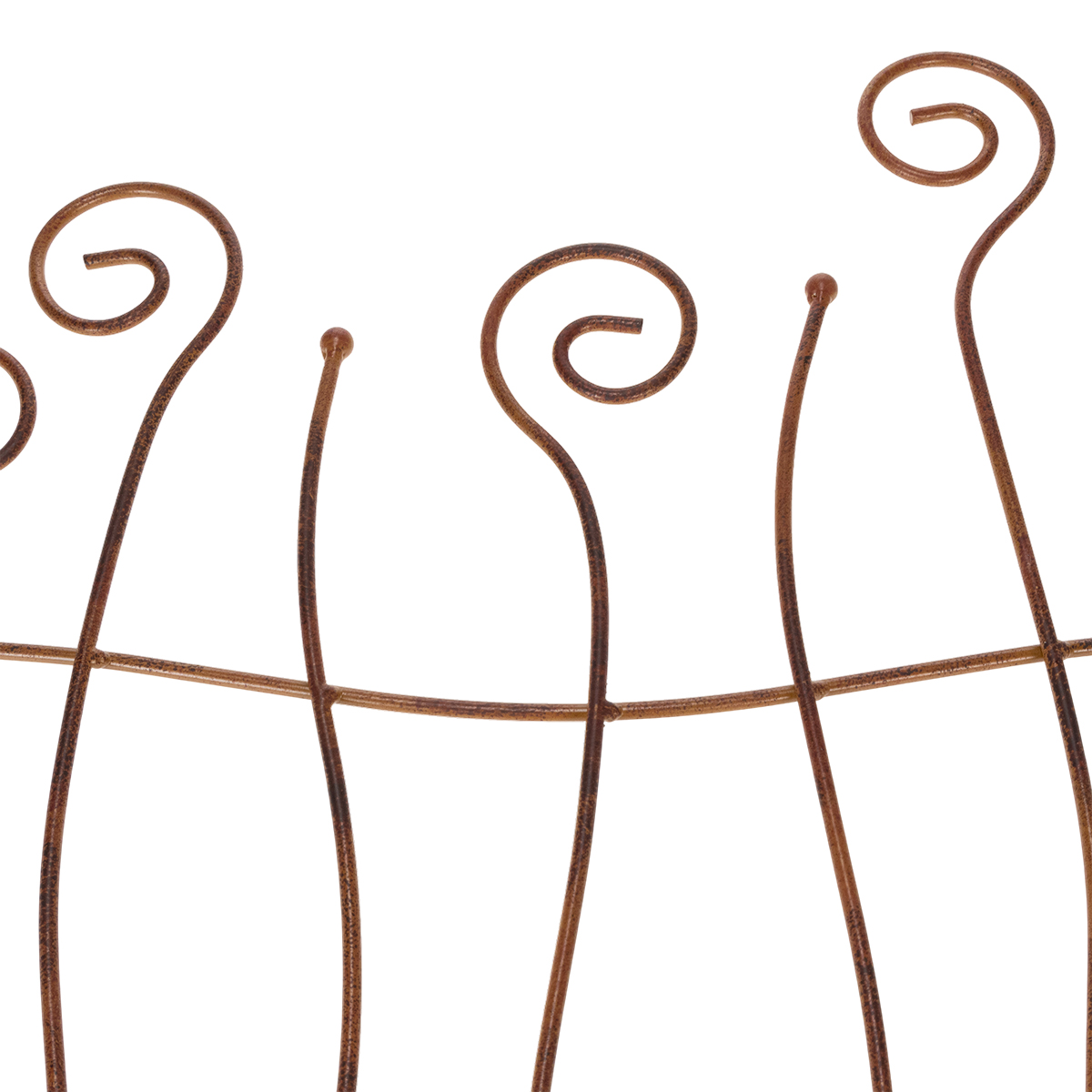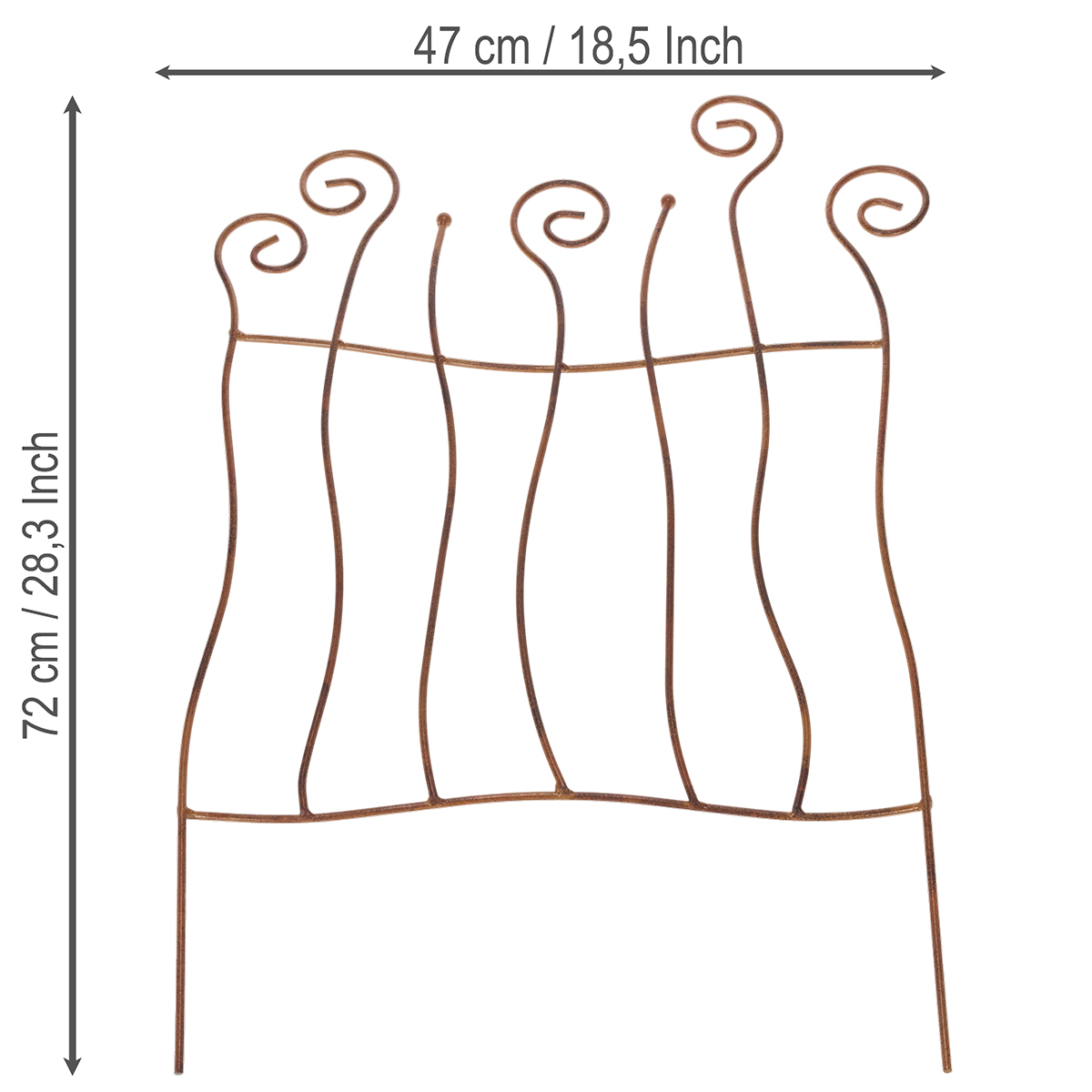 De speelse rondingen van dit tuinhekwerk geven uw buitenruimte een vleugje nostalgische charme in een warme, landelijke stijl. De bruine kleur harmonieert perfect met natuurlijke materialen en kleuren, waardoor u deze duurzame metalen decoratie flexibel kunt combineren. Of het nu gebruikt wordt als visueel accent langs tuinpaden of als middelpunt in een bloembed, dit metalen hekwerk verfraait elk tuinontwerp zowel creatief als praktisch.