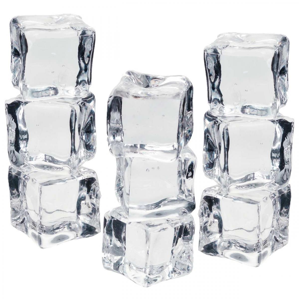 De kunstmatige ijsblokjes zien er verbazingwekkend echt uit, omdat ze een transparantie hebben die getrouw is gemodelleerd naar echt waterijs. Elk kunstijsblokje ziet er een beetje anders uit en is onregelmatig gevormd. Het lijkt alsof de decoratieve ijsblokjes al een beetje zijn gesmolten.