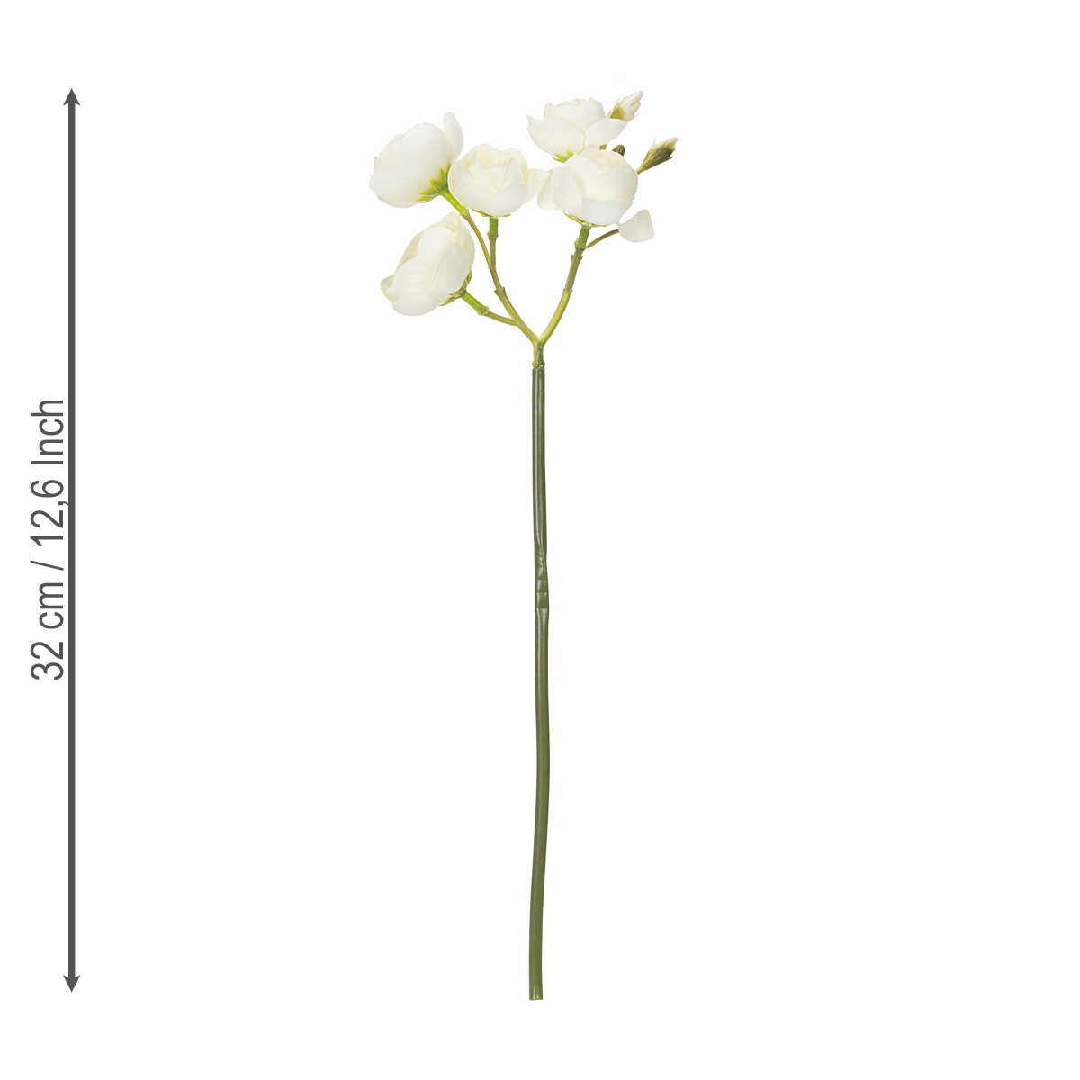 Een frisse lentebries het hele jaar door? Waarom niet! Dit boeket kunstmatige ranunculus in stralend wit brengt een elegante bloemdecoratie in huis die nooit verwelkt en geen onderhoud nodig heeft. Het is bijzonder geschikt voor de woonkamer, op de vensterbank of als blikvanger op kantoor. Met een hoogte van 32 cm en vijf stelen creëert het een authentieke look die bijna niet te onderscheiden is van echte bloemen. Deze kunstbloemen zijn perfect voor iedereen die houdt van de natuurlijke charme van ranunculus en tegelijkertijd waarde hecht aan langdurige schoonheid. Een waar decoratief wonder dat veelzijdig genoeg is om in verschillende omgevingen te gebruiken.