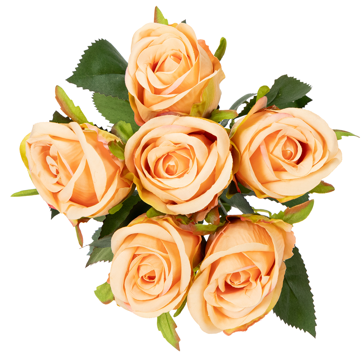 Met een hoogte van 44 cm en een diameter van 10 cm is dit rozenboeket perfect voor middelgrote tot grote vazen of kan het creatief worden verwerkt in een bloemstuk. De zes kunstzinnig vormgegeven rozen, met hun delicate roze tinten en natuurlijke groene bladeren, vormen een harmonieuze compositie die pure elegantie uitstraalt. Elk blad en elke bloem is zorgvuldig vervaardigd om de natuurlijke charme van echte bloemen te evenaren. Dit boeket is gemaakt van polyester en kunststof en is niet alleen visueel aantrekkelijk, maar ook extreem duurzaam. Geen verwelkende bladeren, geen uitdroging en geen allergieën – een duidelijk voordeel ten opzichte van echte bloemen. Met een beetje afstoffen blijft het jarenlang mooi, waardoor het perfect is voor wie waarde hecht aan duurzame decoratie. Combineer het boeket met andere kunstbloemen uit onze collectie of gebruik het als opvallend middelpunt – de mogelijkheden zijn vrijwel eindeloos!