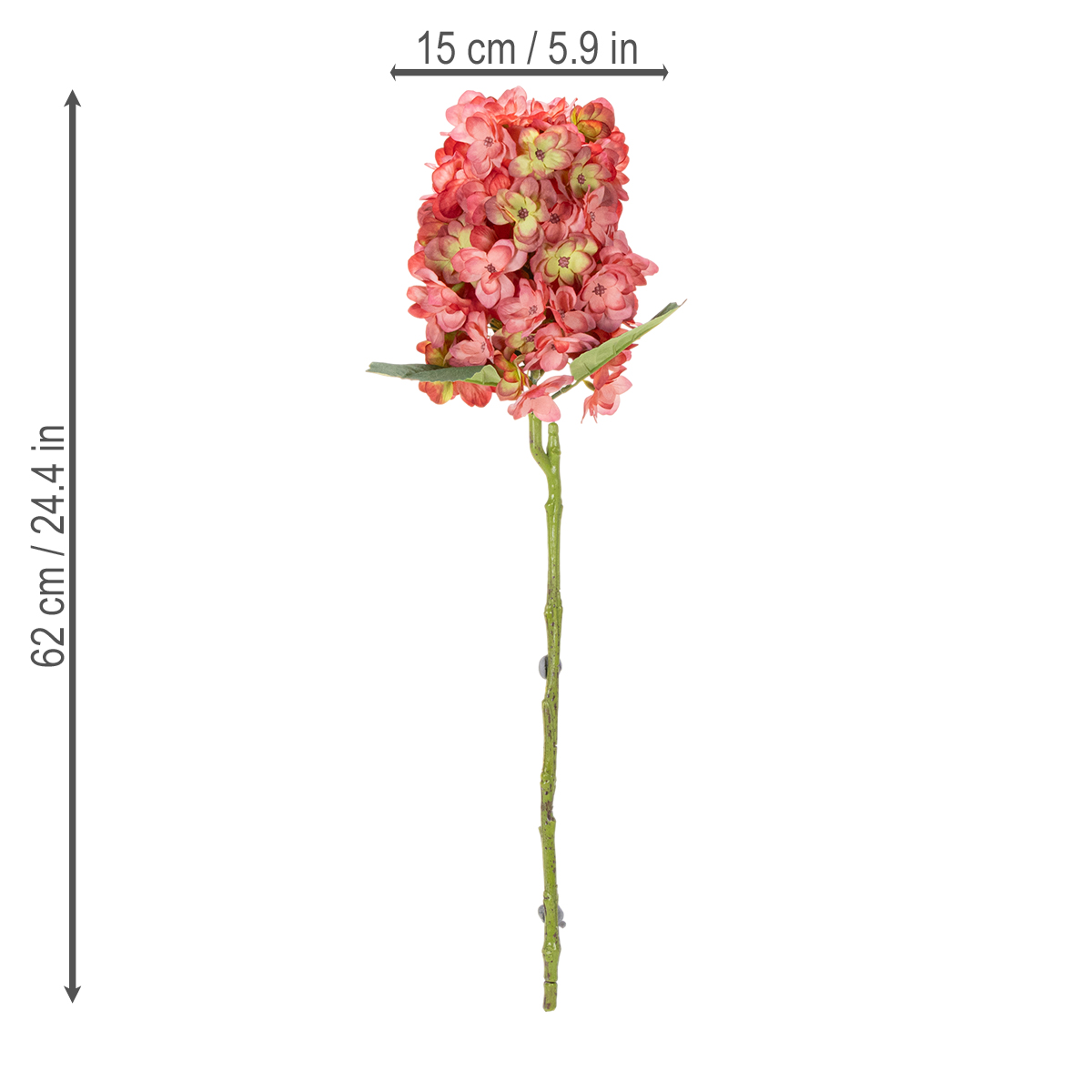 Deze roze kunsthortensia maakt niet alleen indruk met zijn hoogwaardige afwerking van polyester en kunststof, maar ook met zijn veelzijdigheid. Met een hoogte van 62 cm en delicate bloemhoofdjes is hij ideaal voor hoge vazen, creatieve bloemstukken of als opvallend accent. De subtiele kleurovergangen van roze naar crème geven het ontwerp een natuurlijke en harmonieuze uitstraling die bij elke stijl past, van modern tot landelijk.
