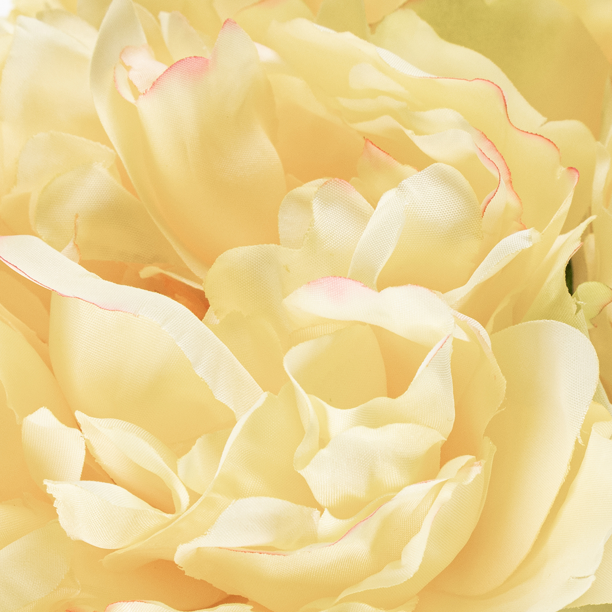 Onze kunstpioenen zijn een ware blikvanger voor elke interieurstijl. De zachtgele tint van de bloemen creëert een vriendelijke en uitnodigende sfeer, waardoor ze perfect passen in moderne, Scandinavische of zelfs klassieke interieurs. Dankzij de hoogwaardige zijden stof zien de bloemen er ongelooflijk realistisch uit. Ideaal voor wie van natuurlijke bloemen houdt, maar het gedoe van constant water geven en verwelken wil vermijden. Deze bloemen zijn duurzaam, gemakkelijk te verzorgen en behouden hun oorspronkelijke schoonheid jarenlang.