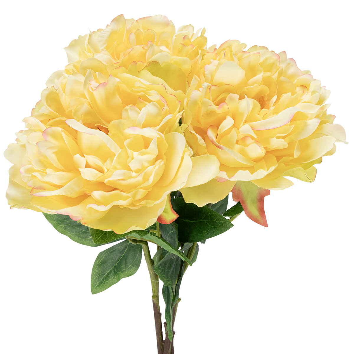 Bent u op zoek naar een manier om uw leefruimte te verrijken met tijdloze charme en natuurlijke schoonheid? Dan zijn onze kunstpioenen met grote bloemen precies wat u nodig heeft! Deze kunstbloemen zijn 60 cm hoog en hebben een indrukwekkend realistische uitstraling. Ze brengen direct een frisse wind in uw huis of kantoor. Het levendige geel van de bloemen, gecombineerd met het rijke groen van de bladeren, zorgt voor een levendige kleuraccent in elke ruimte. Of u ze nu afzonderlijk op een tafel plaatst of combineert met andere decoratieve elementen, deze kunstbloemen zullen zeker indruk maken en zijn bovendien onderhoudsvrij. Perfect voor wie lang wil genieten van een stijlvolle bloemenpracht. Klinkt dit als iets dat past bij uw interieur? Lees dan verder en ontdek het zelf!