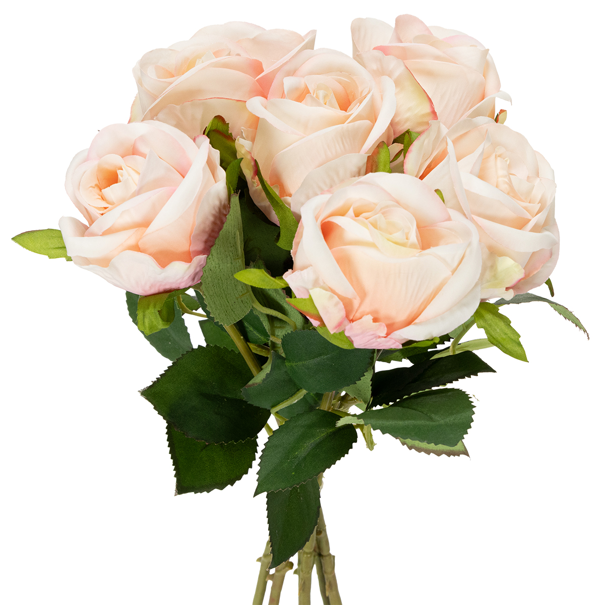 Wie tijdloze elegantie weet te waarderen, zal dol zijn op dit boeket. Het bestaat uit zes individuele rozen van elk 44 cm lang. Deze lang houdbare bloemen zijn gemaakt van hoogwaardig polyester, waardoor ze gemakkelijk te verzorgen en veelzijdig zijn. Decoreer in een moderne, romantische stijl, of geheel naar eigen smaak – dit rozenboeket past zich perfect aan.