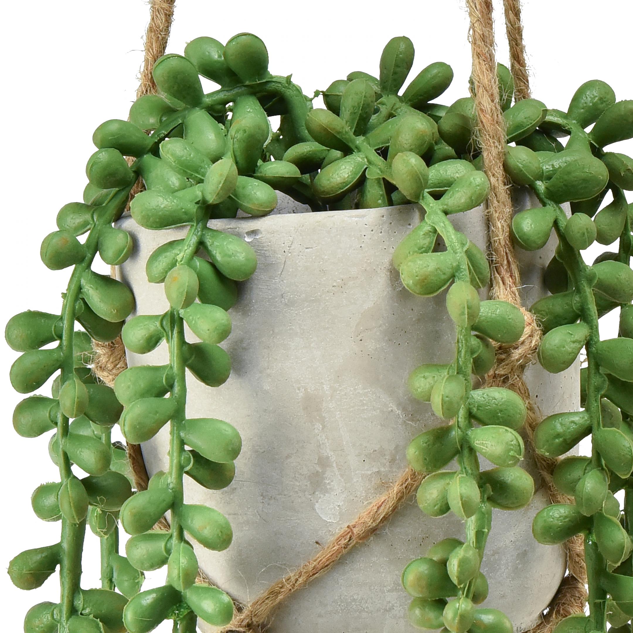 In de grijze keramiek bloempot ziet de slangensedum er bijzonder levendig en authentiek uit. Last but not least geeft een geknoopte ophanging in macramé-look de hangmand een rustiek tintje.