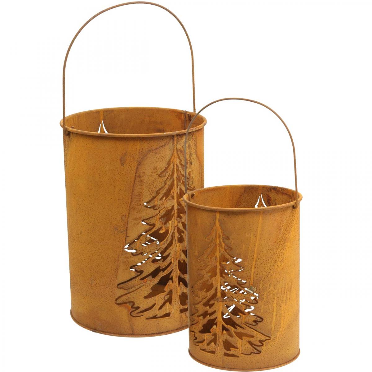 Lantaarn metalen lantaarn patina decoratie Ø16/20,5cm set van 2