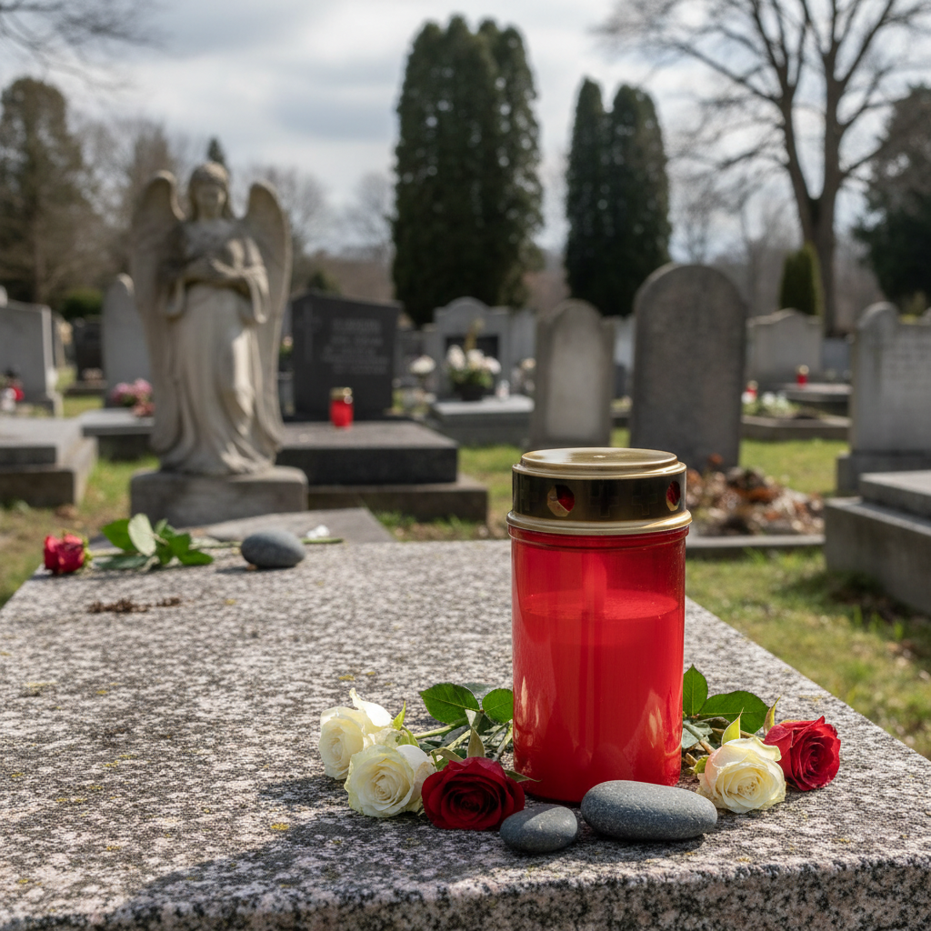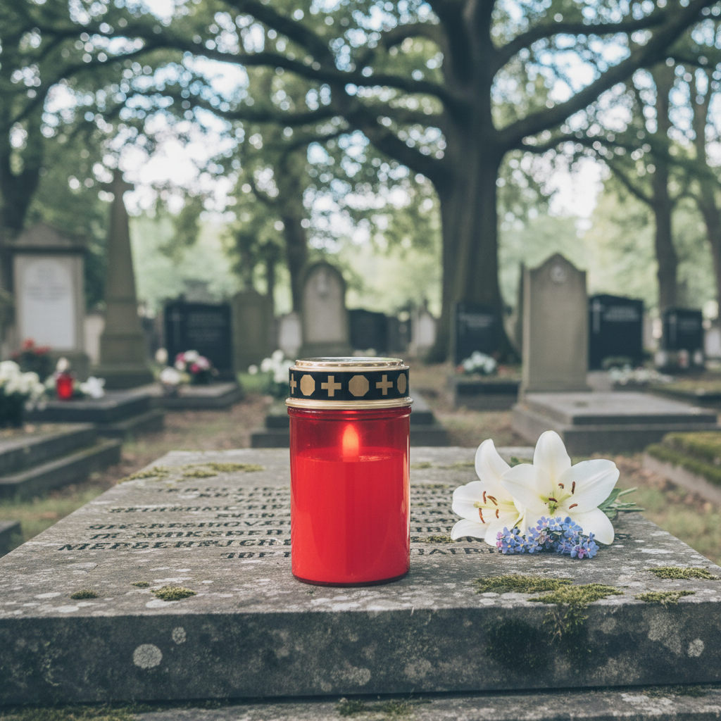 Sfeervolle begraafplaatsverlichting: LED-graflicht in rood voor het graf van een dierbare