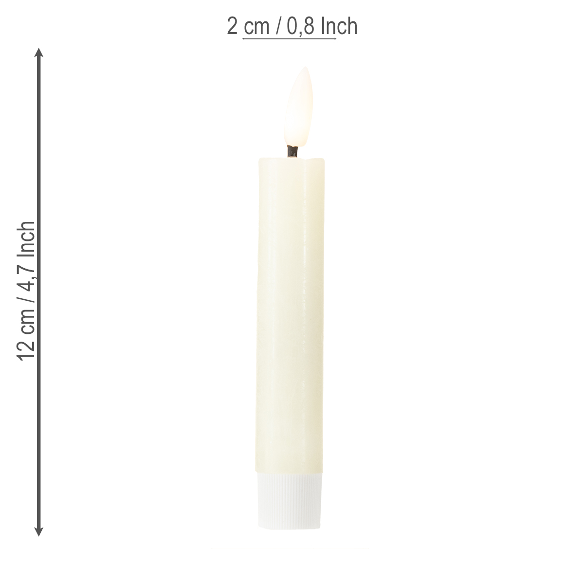De kaarsen zijn 14,5 cm hoog en ideaal voor elegante, standaard kaarsenhouders en adventskransen. Ze werken niet alleen in feestelijke kerstdecoraties. Ze werken op batterijen en zijn draadloos, dus overal te gebruiken – geen stopcontact nodig! Of het nu op de vensterbank is, bij het aankleden van een tafel of als onderdeel van een romantisch doe-het-zelfproject: deze taps toelopende kaarsen zijn veelzijdig en geven elke kamer een stijlvolle sfeer.