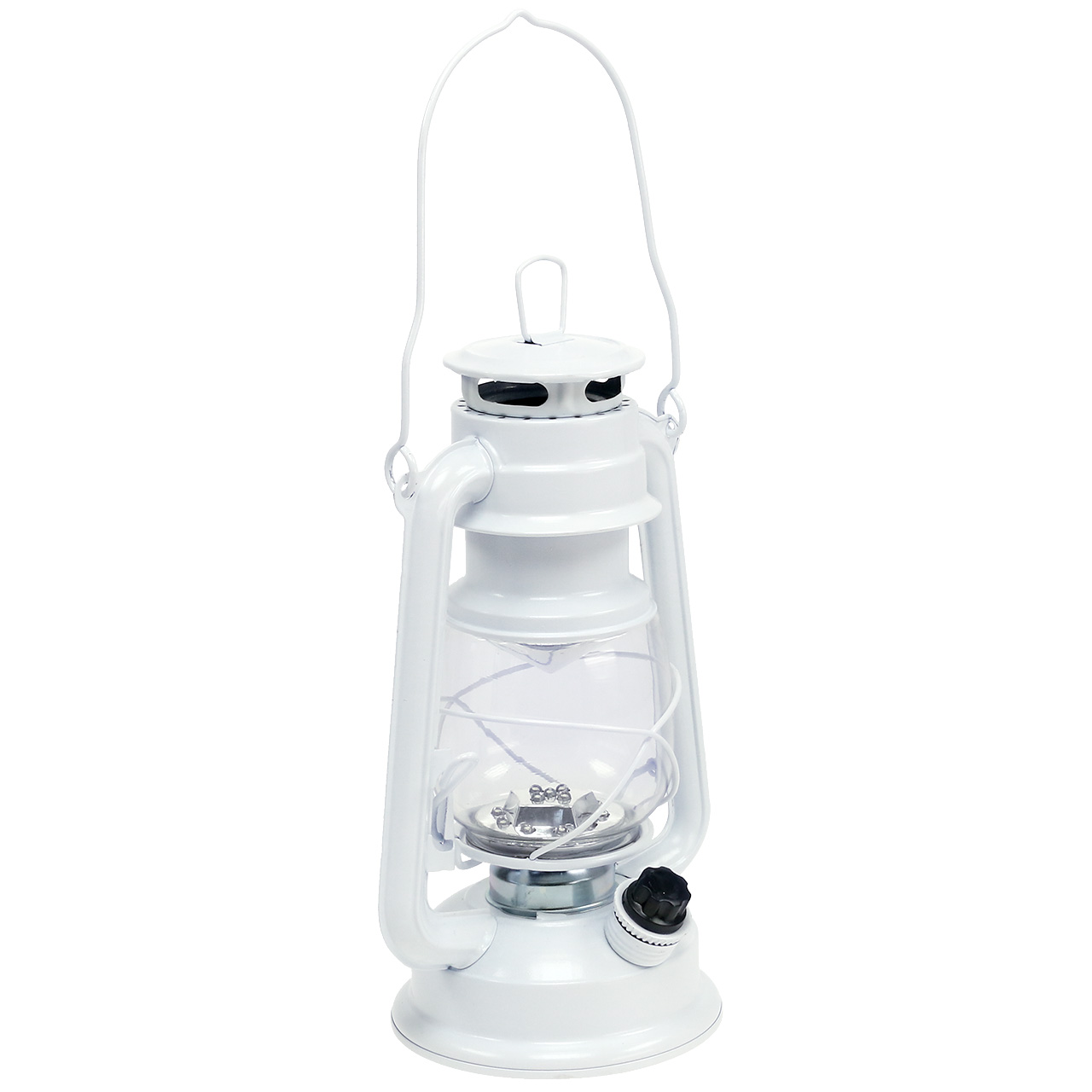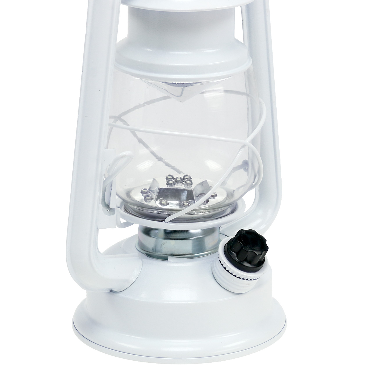 Er is een praktische draaiknop aan de zijkant die, naar rechts gedraaid, de 15 LED-lampen in de glazen container inschakelt. Hoe verder u de schakelaar naar rechts draait, hoe helderder de lampen worden.