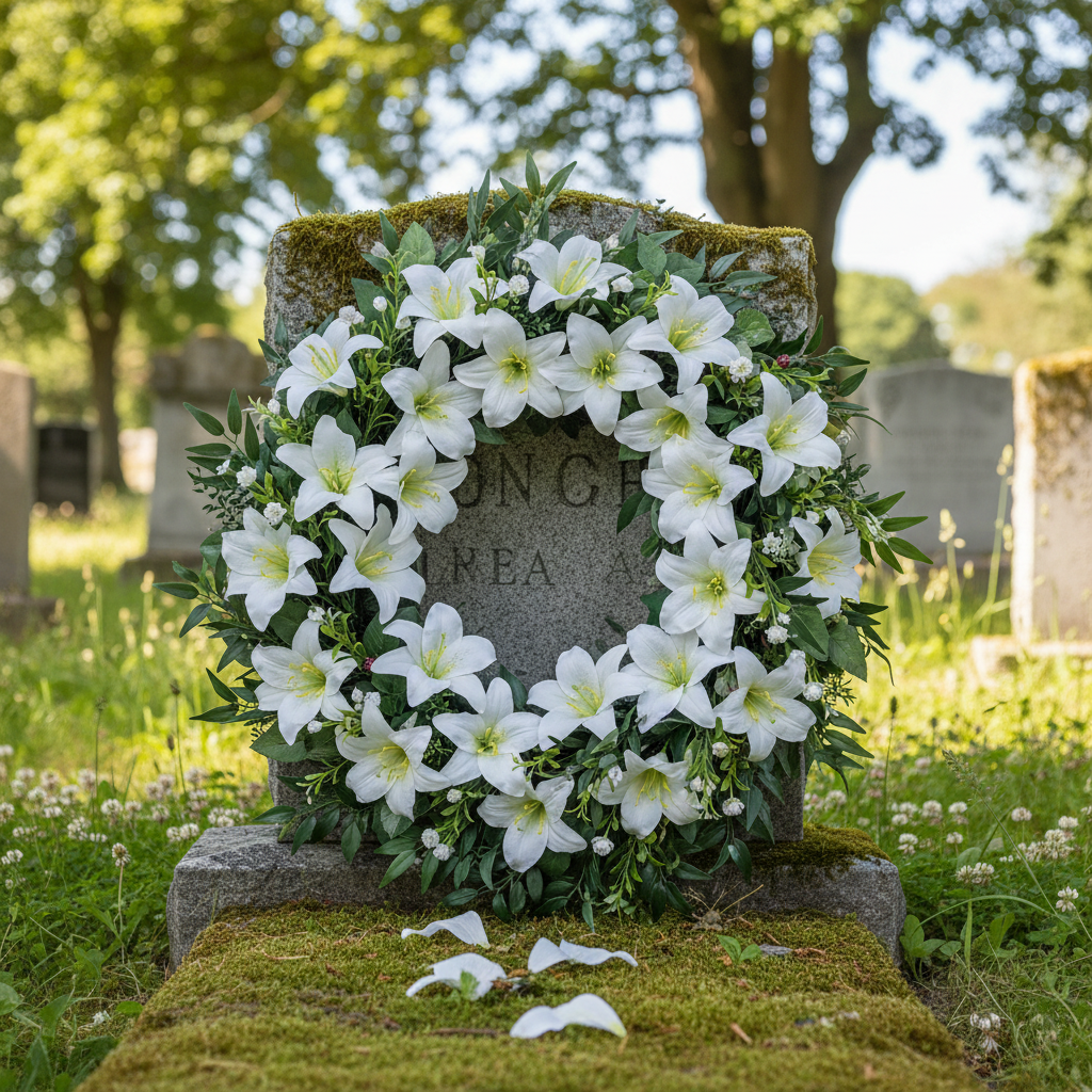 Beoogd gebruik: Gedenkbloemisterijartikelen voor begraafplaatsdecoratie, rouwarrangementen, grafversieringen en bloemdecoratie.