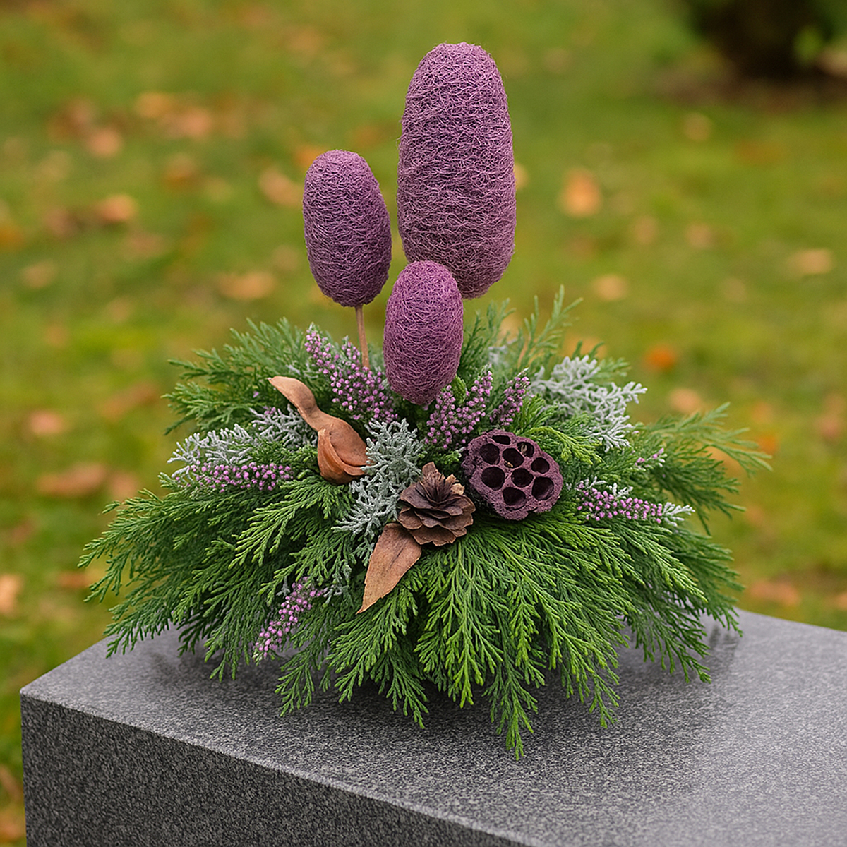 Beoogd gebruik: Gedenkbloemisterijartikelen voor begraafplaatsdecoratie, rouwarrangementen, grafversieringen en bloemdecoratie.