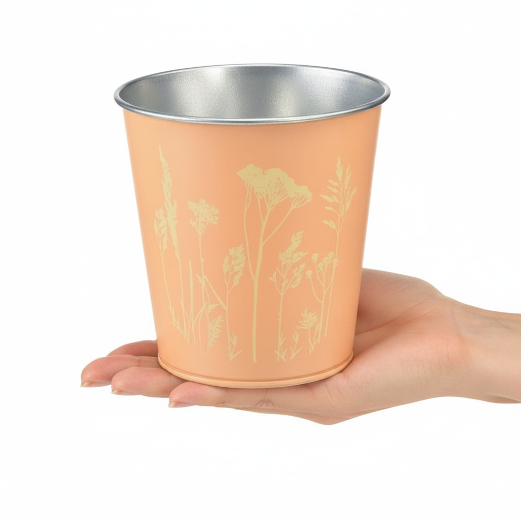 Metalen bloempot, plantenbak, perzikgeel, Ø11,5 cm H11,5 cm