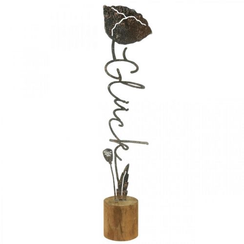 Metalen deco bloem houten standaard met opschrift "Happiness" H40cm