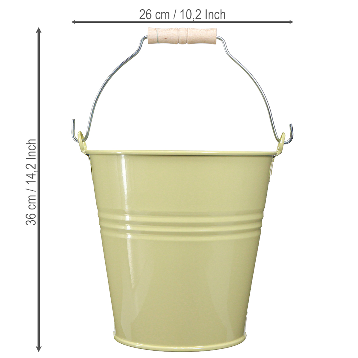 Onze decoratieve metalen emmer overtuigt door zijn aantrekkelijke groengele afwerking en is uitgerust met een beweegbaar handvat en een houten handvat, wat niet alleen praktisch is, maar ook de nostalgische stijl onderstreept. De elegante decoratieve groeven geven de bloempot een charmant tintje dat prachtig kan worden geïntegreerd in verschillende inrichtingsstijlen. Deze decoratieve emmer komt vooral in landelijke stijl tot zijn recht als stijlvol element dat gecombineerd kan worden met natuurlijke materialen of rustieke meubels.