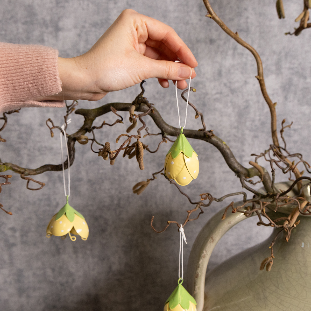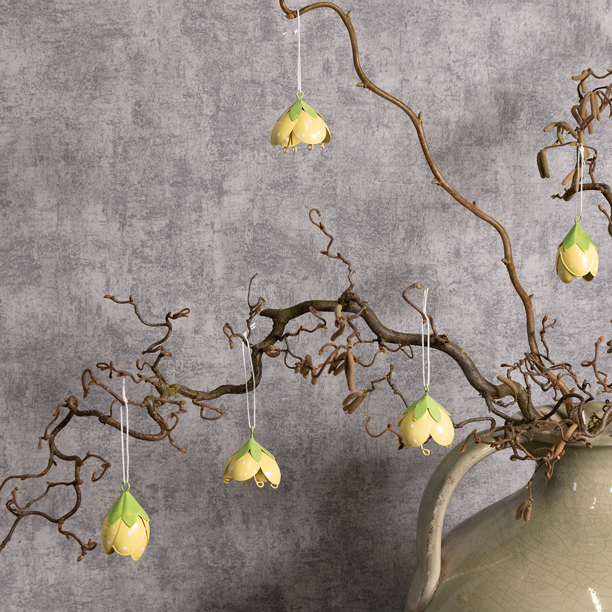 Deze hangende metalen bloemen zijn ideaal voor iedereen die houdt van speelse en romantische decoraties. Met een hoogte van 6 cm en een diameter van 4 cm zijn ze niet te groot, maar toch een stijlvolle blikvanger. De delicate gele en groene kleuren zorgen voor een frisse uitstraling en passen prachtig bij diverse stijlen – van landelijke en shabby chic tot klassieke bloemstukken. Dankzij de hoogwaardige metalen constructie zijn de bloemen robuust en geschikt voor zowel binnen als buiten. Ze staan bijzonder charmant in een hal, waar ze gasten op een vrolijke manier verwelkomen.