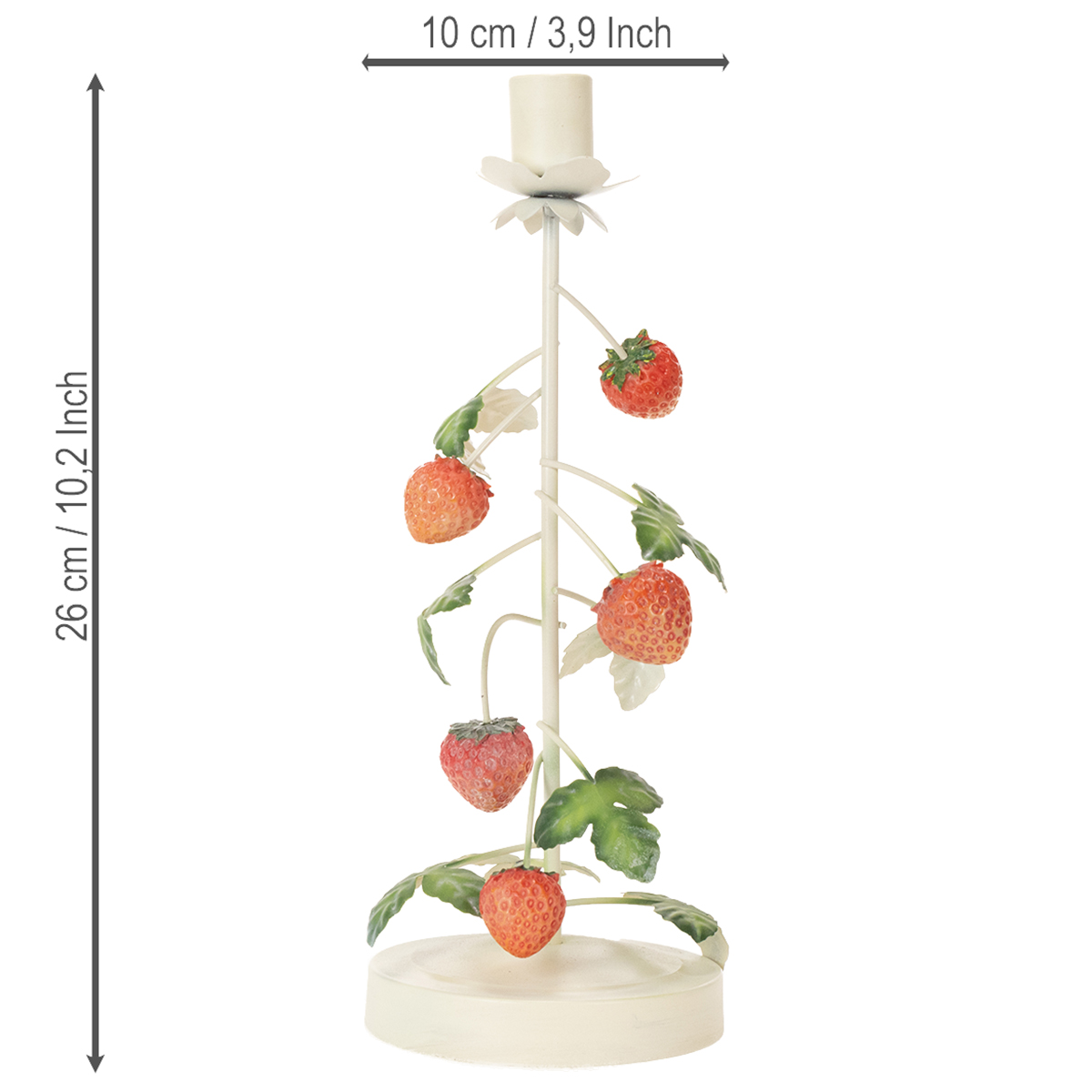 Metalen kaarsenhouder met aardbeienversiering, crèmekleurig, rond, H26cm