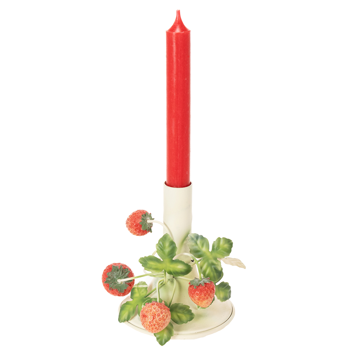 Zomerse aardbeiendecoratie: metalen kaarsenhouders voor delicate accenten
