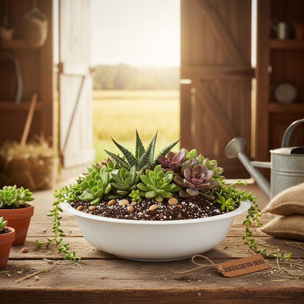 De sierschaal is niet alleen geschikt voor beplanting (de bloemenschaal kun je het beste afdekken met folie), maar ook voor tafelarrangementen die je een ietwat rustieke toets wilt geven.