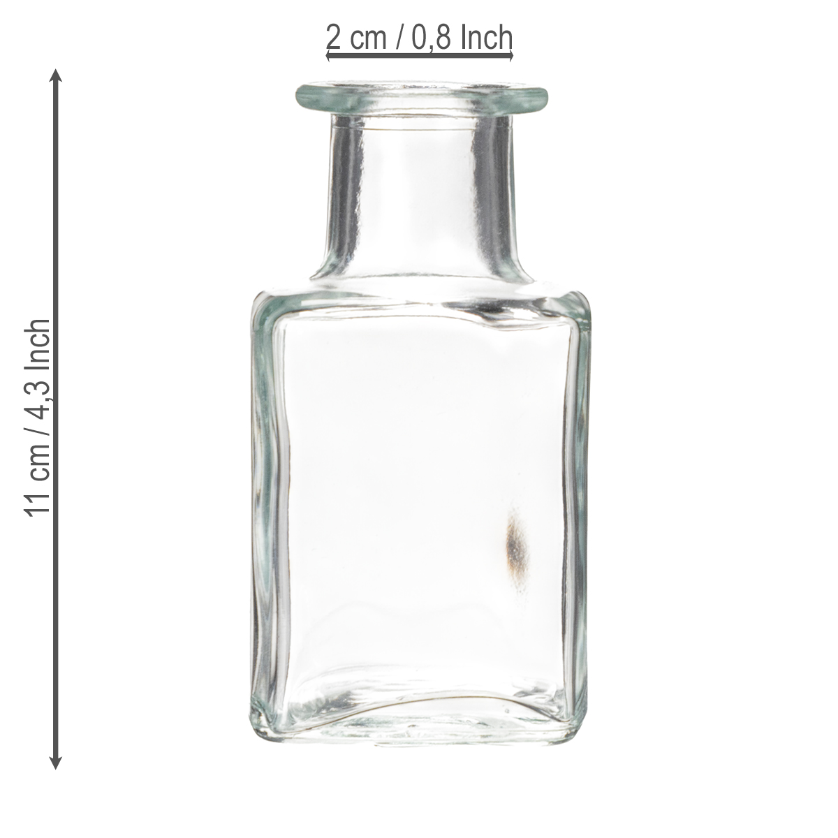 Onze mini-vaas van helder glas combineert functionaliteit en stijl. De transparante look geeft hem een tijdloze elegantie – perfect voor moderne interieurs en liefhebbers van minimalistisch design. Dankzij de vierkante voet is hij niet alleen zeer stabiel, maar ook esthetisch aantrekkelijk. Met een lengte van 5 cm en een breedte van 5 cm heeft hij een evenwichtige vorm. Tegelijkertijd is de hoogte van 11 cm ideaal voor kleine boeketjes, losse bloemen of arrangementen met droogbloemen.
