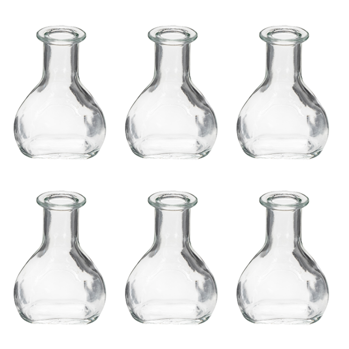 - Set van 6 mini glazen vaasjes in een transparant design.