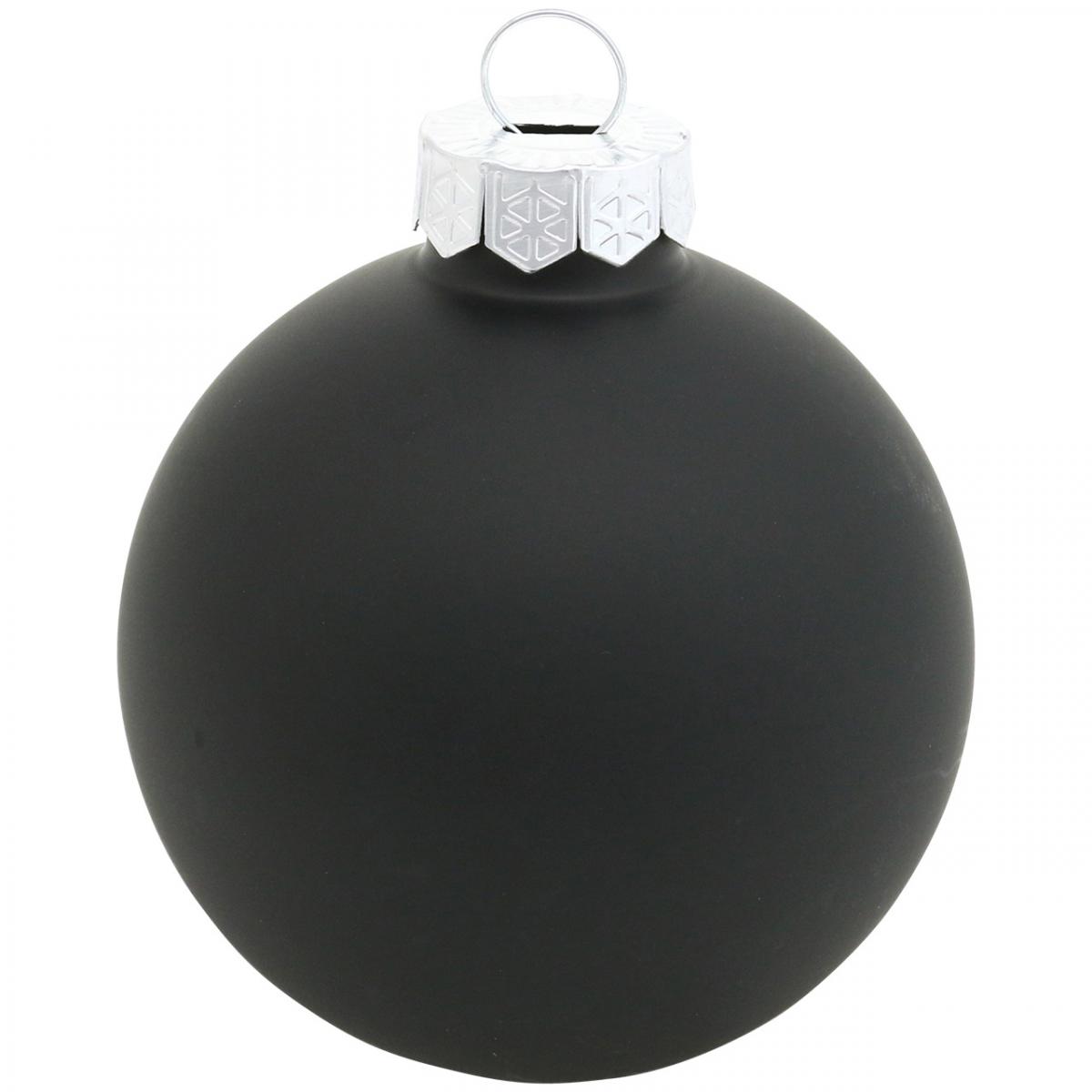 Wil je wat afwisseling in de kerstboom? Pak dan deze mini kerstballen in het zwart! De boomdecoratie mix bestaat uit 24 glazen kerstballen, de ene helft van de boomballen is mat zwart, de andere helft is glanzend.Elk van de glazen bollen is bovendien voorzien van een zilveren oogje aan de bovenzijde, waarmee de bollen in een handomdraai aan de kerstboom of andere adventsversiering kunnen worden bevestigd met behulp van een haakje of sierband.