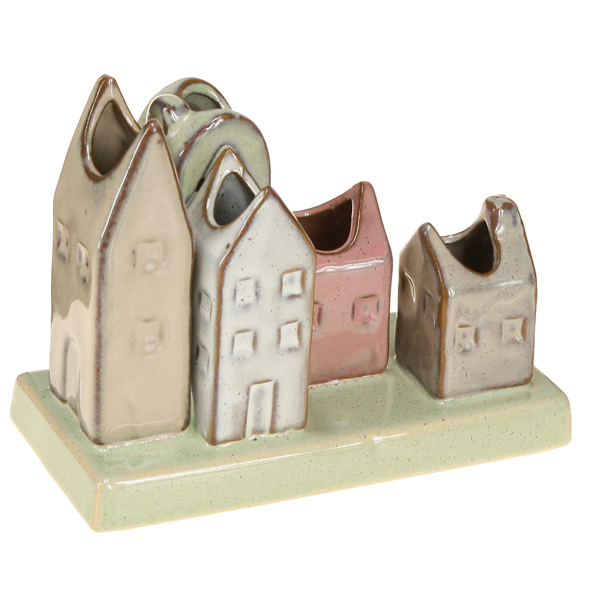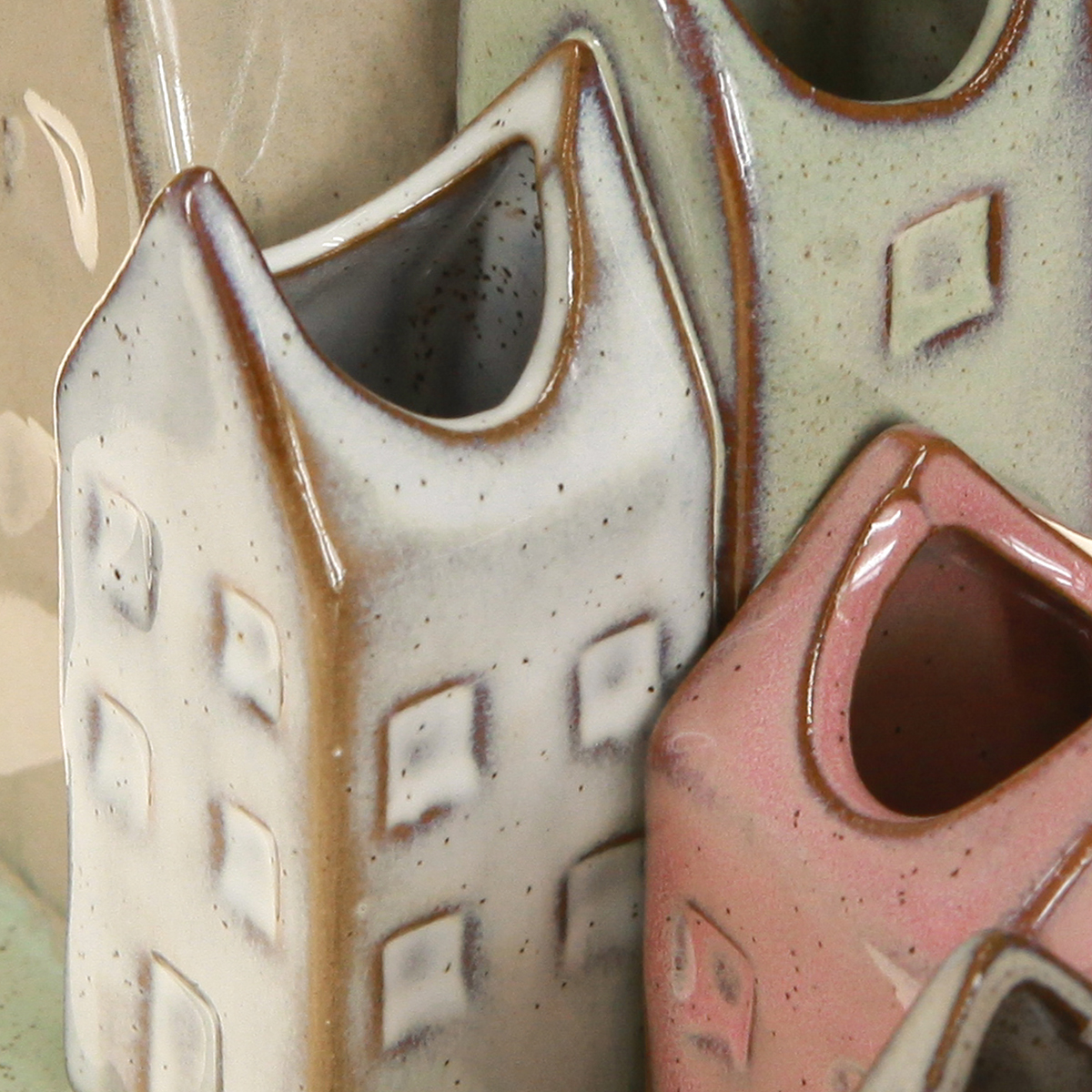 - Set van vijf kleine vaasjes in de vorm van huisjes