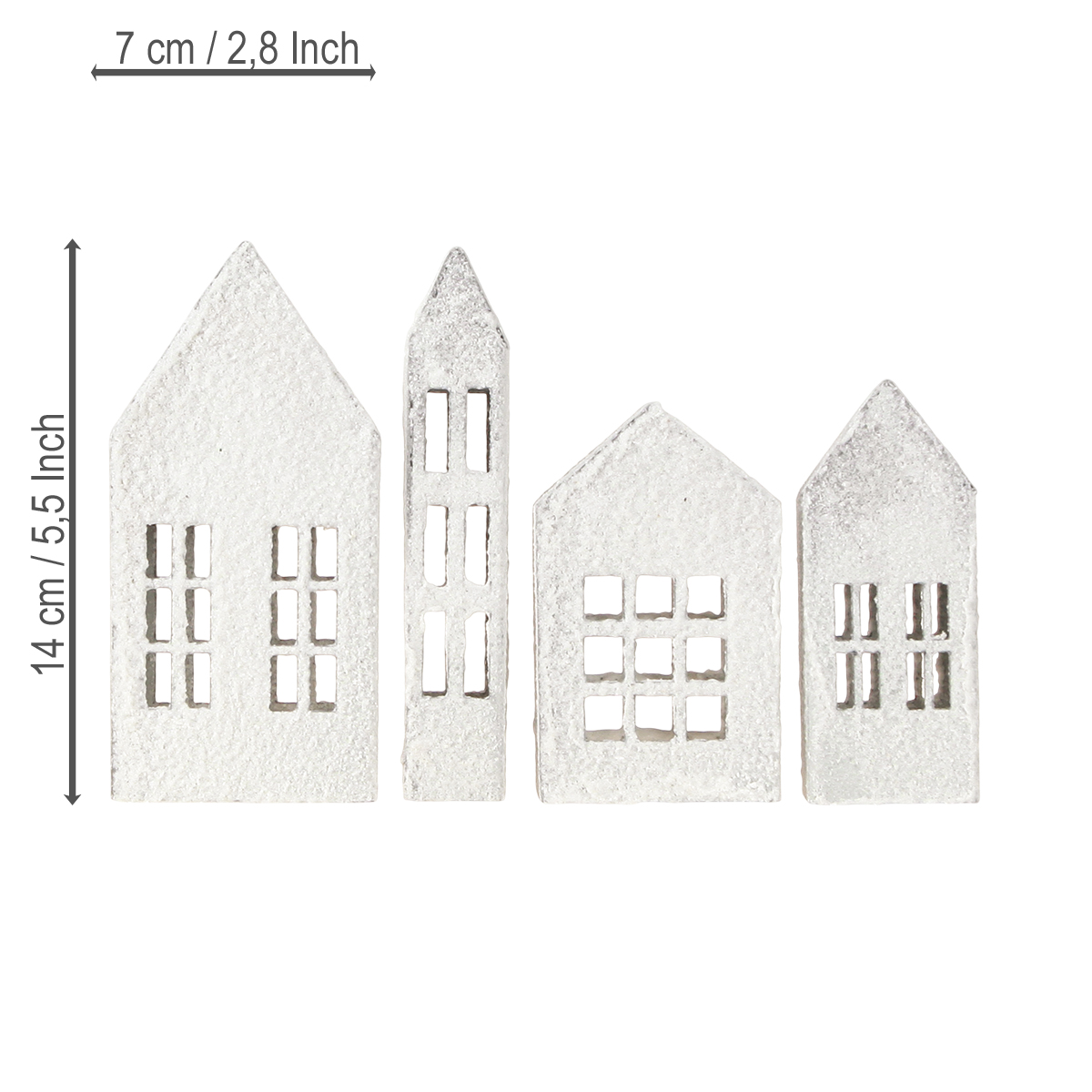 Productnaam: Miniatuurhuisjes voor interieurdecoratie en sfeer, zeer decoratief, tijdloos design voor in huis, 14 cm, 4 stuks