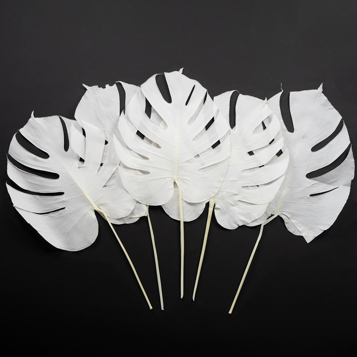 Deze gebleekte Monstera-bladeren bieden talloze designmogelijkheden! Of het nu gaat om een highlight in een modern boho-arrangement, elegante bruiloftsdecoratie of minimalistische doe-het-zelfprojecten – deze zorgvuldig geconserveerde bladeren van de plant, ook wel gatenplant genoemd, trekken ieders aandacht met hun delicate crèmewitte kleur.