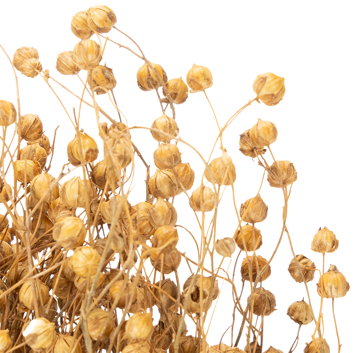 De vele kleine, ronde zaadkapsels van vlas zijn van nature al zeer decoratief, waardoor vlas het hele jaar door een populair decoratief element is in droogbloemstukken! Gedroogd vlas is onmisbaar in de bloemistenbenodigdheden en kan op diverse manieren worden verwerkt in droogboeketten, natuurlijke kransen en decoratieve ringen in de populaire Scandinavische stijl.