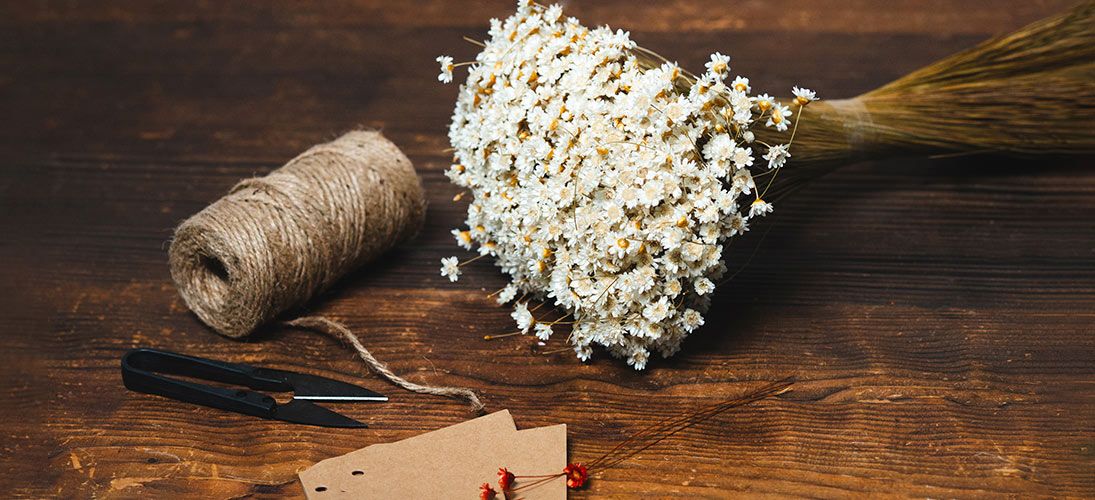 Ons aanbod varieert van natuurlijke twijgen en takken zoals de kurkeik tot materialen gedoopt in kleur zoals tonkin, rotan en achillea.