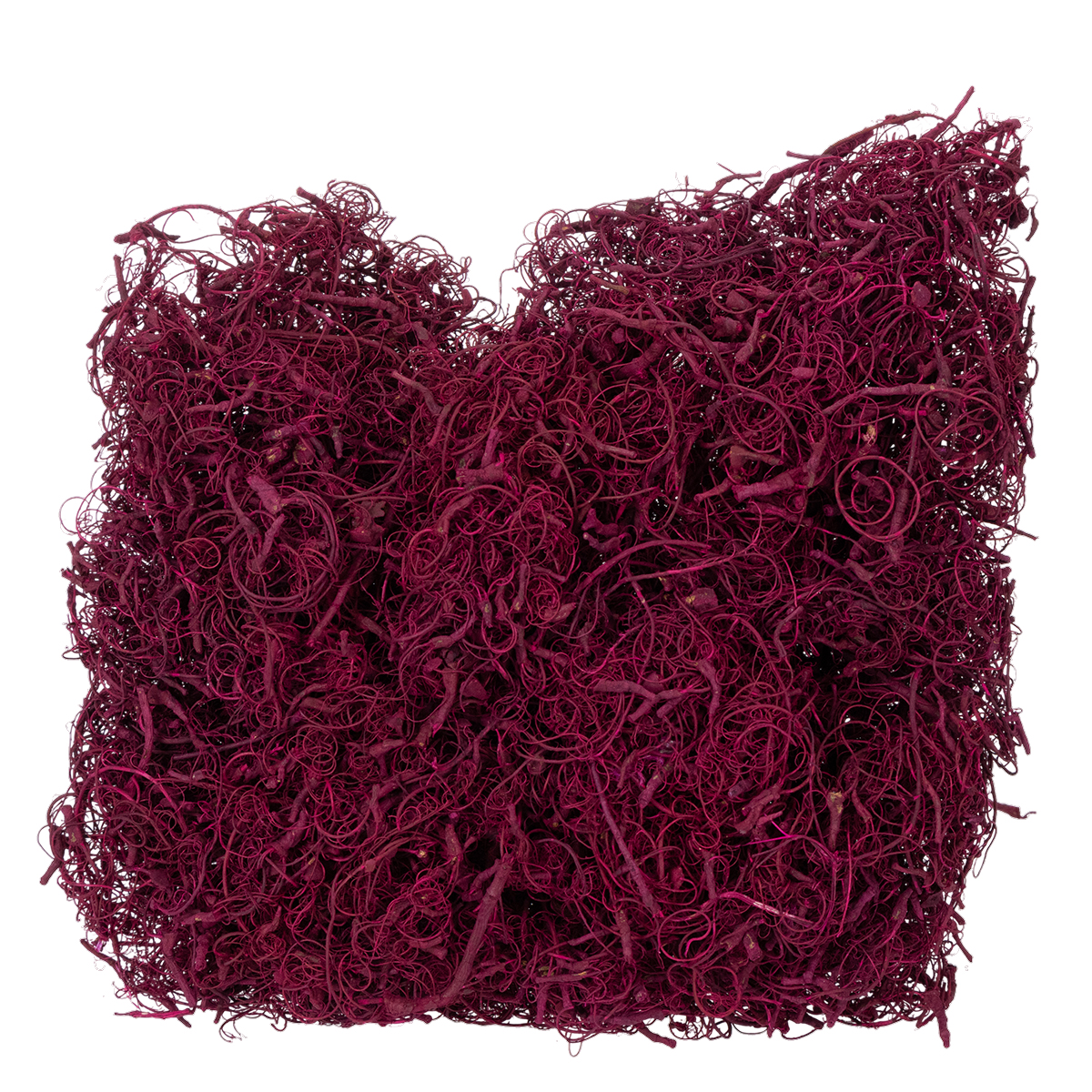 Door de sterke kleur is de natuurlijke vezel ook meer dan alleen een opvuller in zomerse decoraties zoals bloemstukken of sierschalen. De trendy bessenkleur laat zich in de herfst ook prachtig combineren met kegels, twijgen en groene herfstvruchten. Het exotische natuurlijke materiaal zet ook mooie accenten in rouwbloemen of in grafarrangementen.