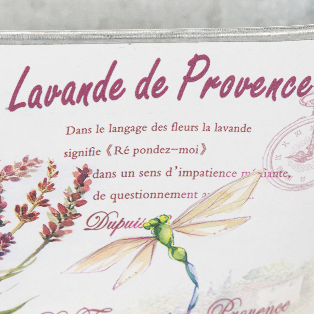 Ontdek deze ovale bloemenschaal met handvatten en zijn subtiele lavendel- en libellenprint die rust en sereniteit in uw kamers zal brengen. De metalen schaal heeft een rustieke en nostalgische uitstraling tegelijk.