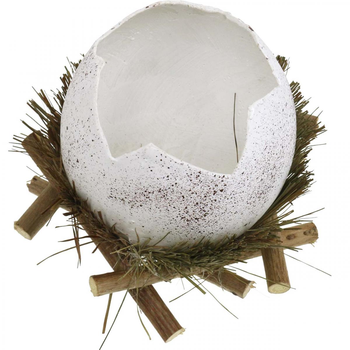 Paasdecoratie, ei in een nest, decoratief ei, vogelnest Ø9cm H10cm Wit, natuurlijke kleuren 4 stuks