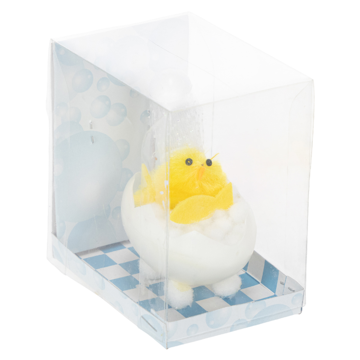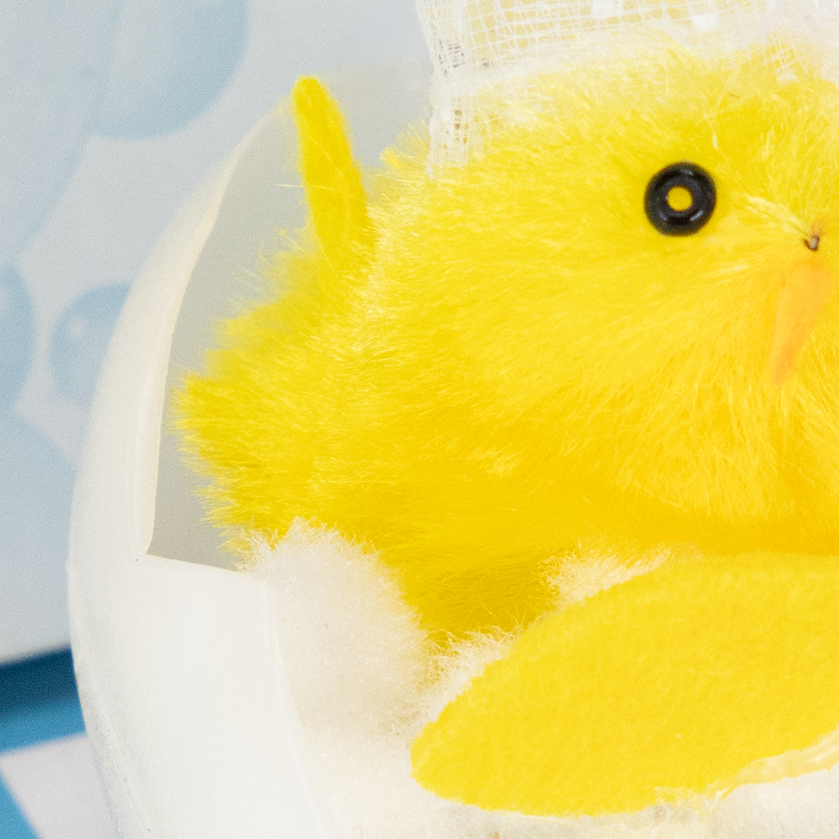 Paasdecoratie met kuikentje, chenille kuikentje in bad, geel, 9 cm