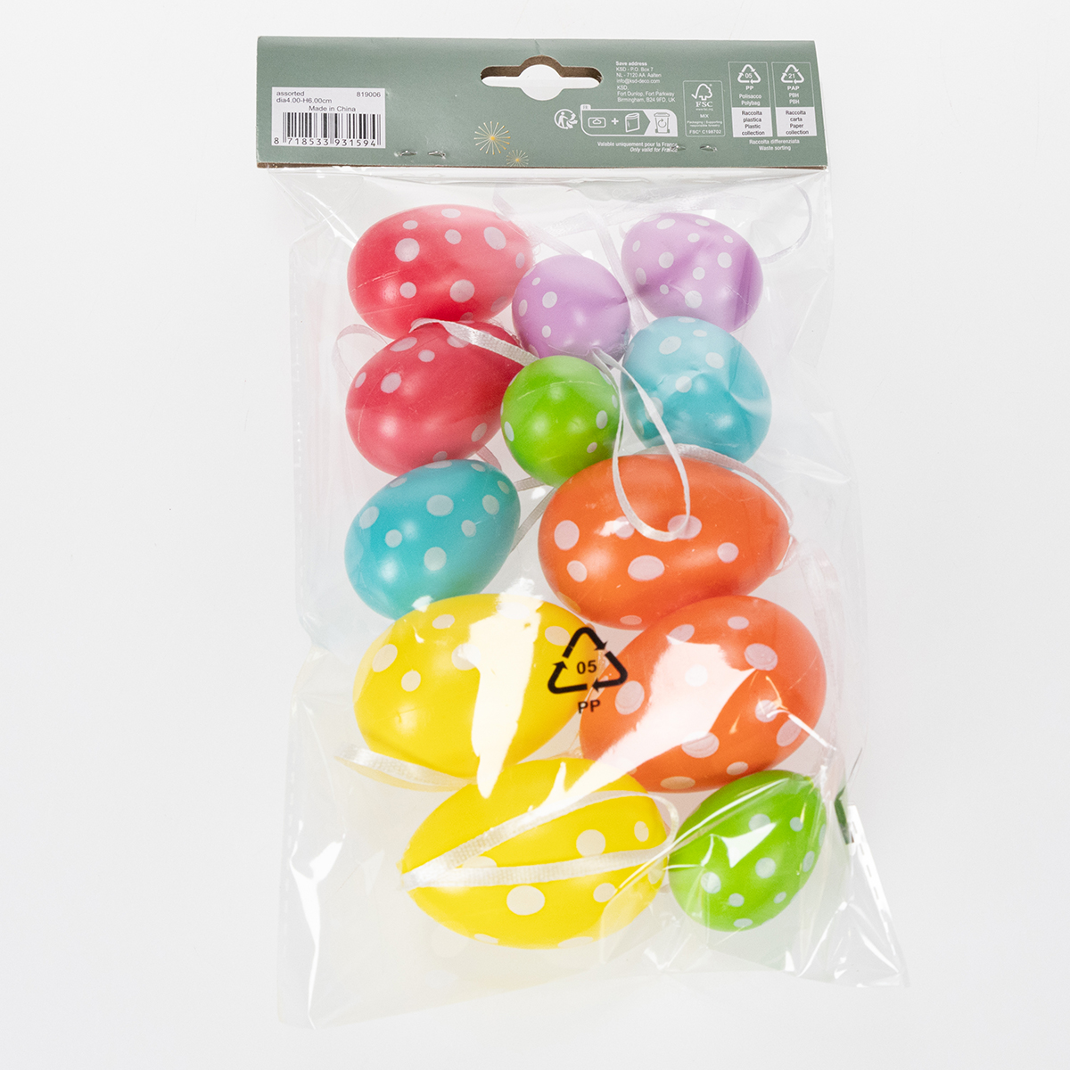 Productnaam: Paaseieren om op te hangen, diverse kleuren, 6 cm, 12 stuks