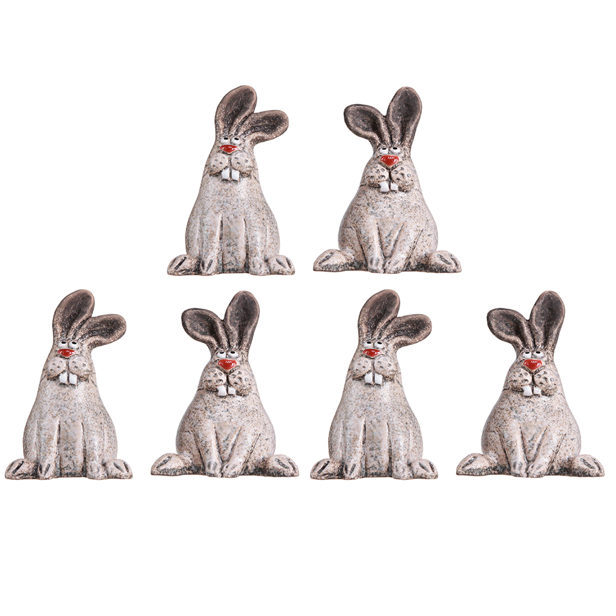 Paashaas Keramiek Grappig Decoratief Konijn Bruin H7cm 6 st