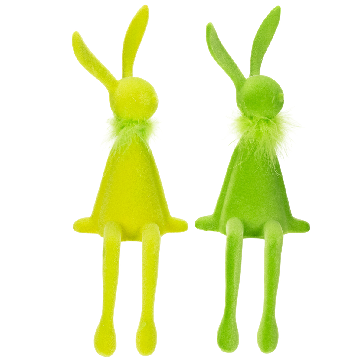 Wil je van je huis een feestelijk lenteparadijs maken? Deze betoverende paashaasjes, perfect om aan een plank te hangen, zorgen daar in een handomdraai voor! Dit duo in frisse groene tinten brengt niet alleen paasvreugde in huis, maar fleurt ook elke woonkamer op. Of ze nu op een plank, vensterbank of als blikvanger op de eettafel staan, deze fluweelzachte, met dons beklede figuurtjes geven je interieur een moderne en speelse touch. En het mooiste? De delicate verenboa maakt het helemaal af – een echte eyecatcher!