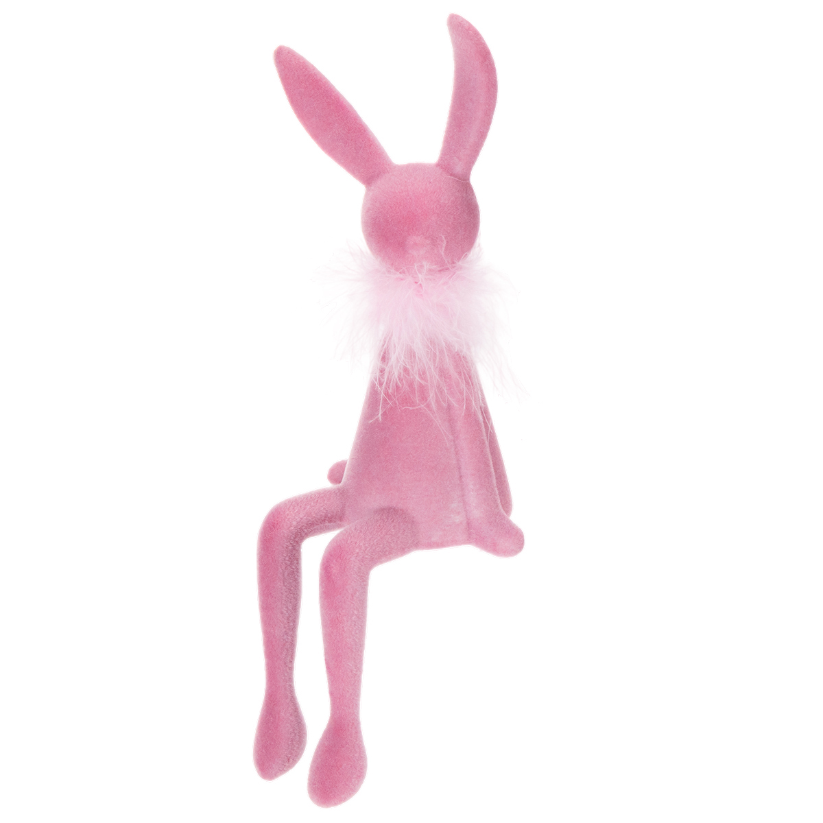 Productnaam: Paashaasje met verenboa, decoratief paasfiguurtje voor op een plank, 27 cm, 2 stuks