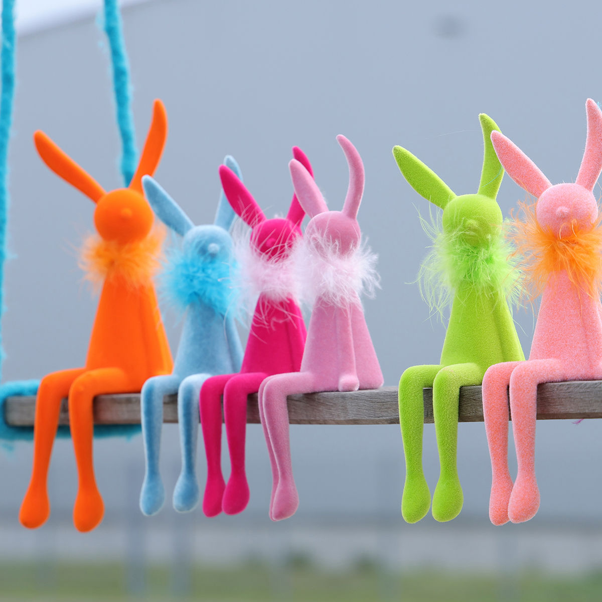 Onze betoverende paashaasjes imponeren niet alleen met hun schattige uiterlijk, maar ook met hun veelzijdigheid. Ze voegen een charmante touch toe aan vensterbanken, schoorsteenmantels of zelfs een gezellig plankje in de woonkamer. Hun moderne ontwerp, gecombineerd met delicate tinten roze en lichtroze, maakt ze perfect voor een lenteachtige omgeving of een Scandinavisch interieur. Met hun verenboa en charmante bungelende pootjes geven ze uw decoratie een vleugje elegantie zonder rommelig over te komen.