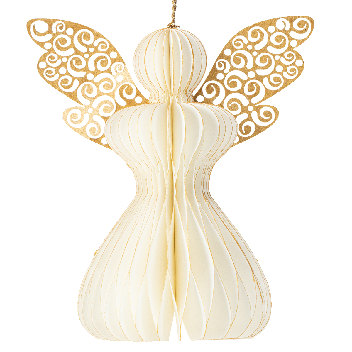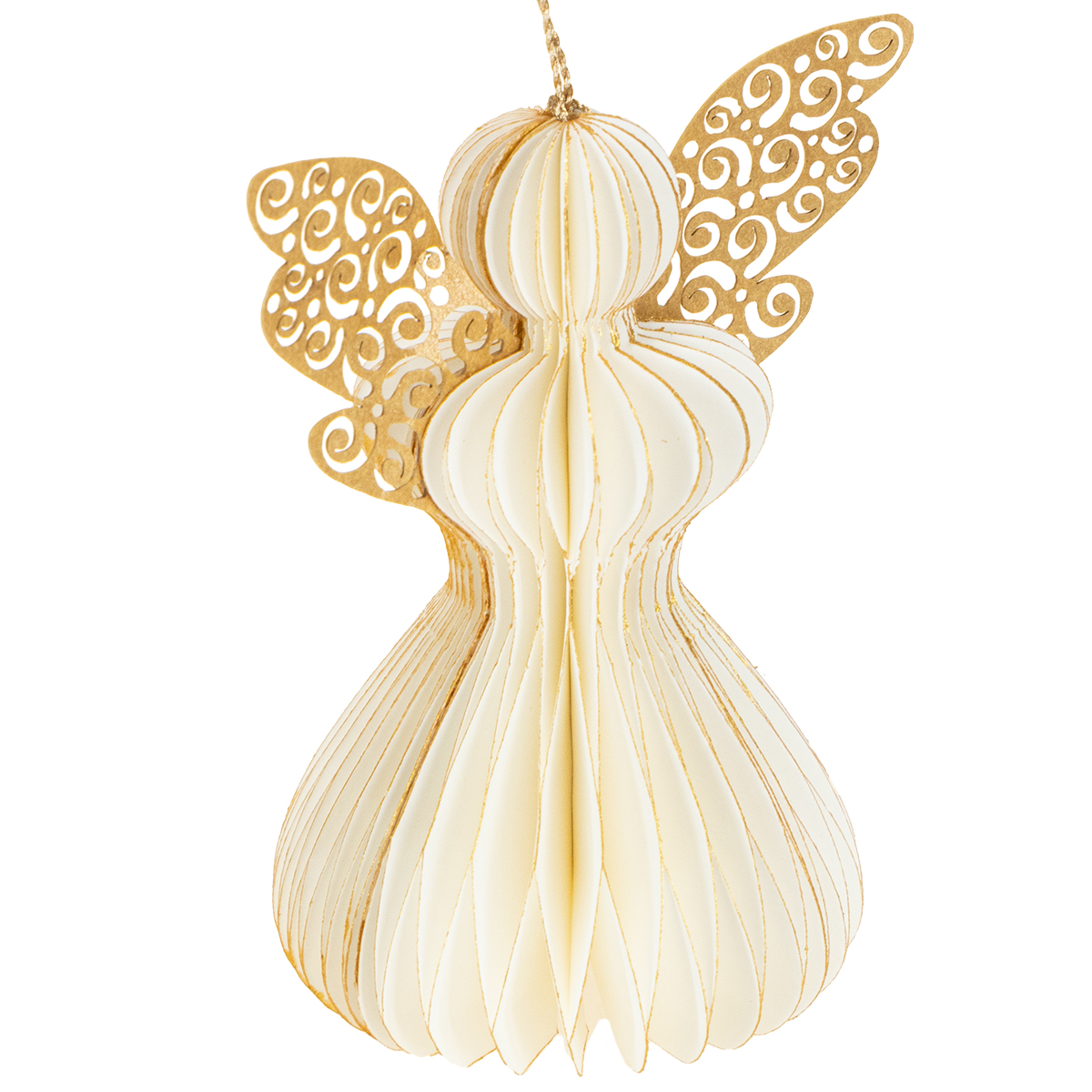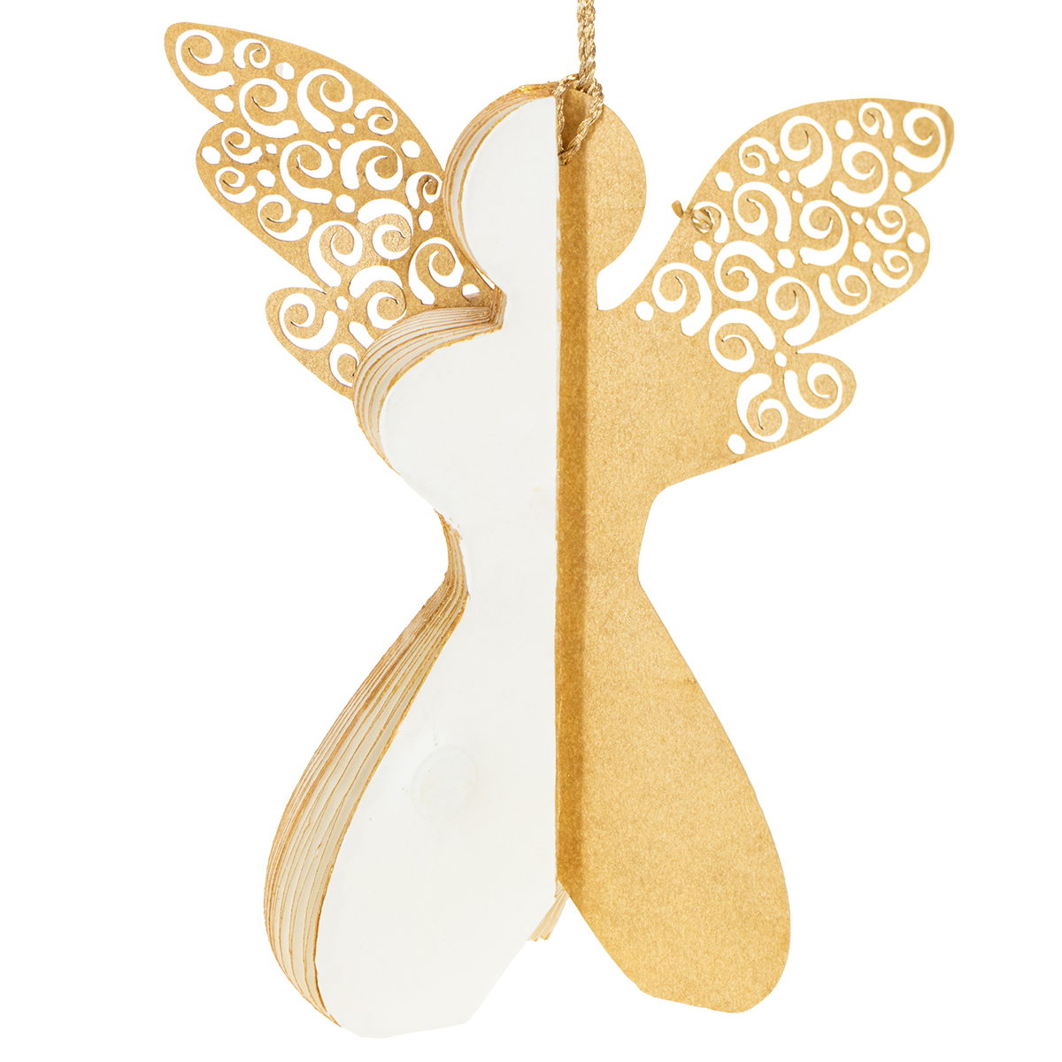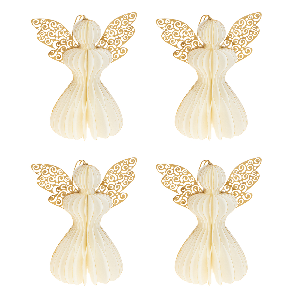 Productnaam: Papieren engelenboomornamenten, engelhangers, wit en goud, 12 cm, 4 stuks