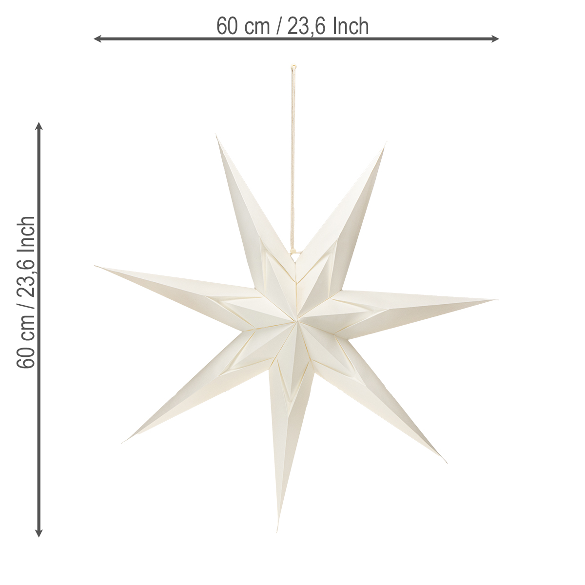 Papieren ster, crèmewit, grote hangende ster, 60 cm