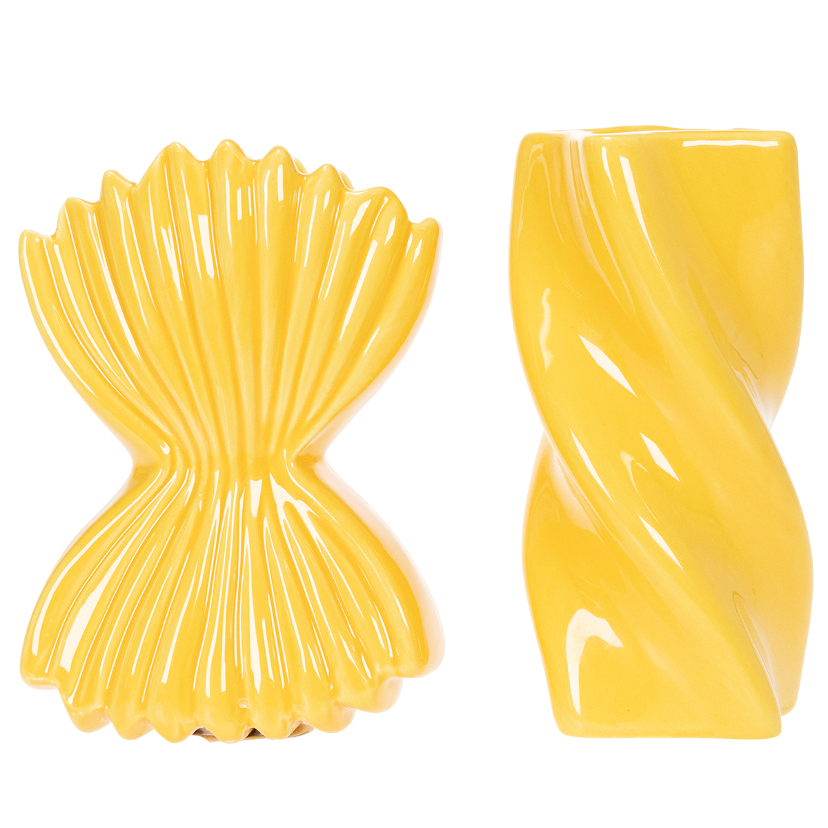 Deze decoratieve keramische vazen betoveren direct met hun uitzonderlijke ontwerp, geïnspireerd op de speelse vormen van populaire Italiaanse pasta. Perfect voor liefhebbers van originele decoraties en moderne designstukken! De combinatie van levendig geel en gedetailleerd design maakt deze vazen tot een stijlvol accessoire voor woon- of kantoorruimtes in mediterrane stijl. Combineer deze designstukken met een eenvoudig tafelkleed of decoratie in mediterrane stijl voor een harmonieus geheel.