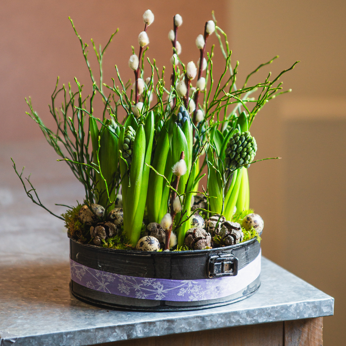 Deze decoratieve bakvorm is een metalen decoratie en een plantenbak in één! De plantenbak in de vorm van een springvorm is zowel geschikt als schotel voor arrangementen als als plantenbak voor één grote of meerdere kleinere bloempotten. De springvorm kan ook direct worden gebruikt om te planten. Als de bloemdecoratie moet worden bewaterd, moet u de metalen bak vooraf met plantenfolie afdekken.