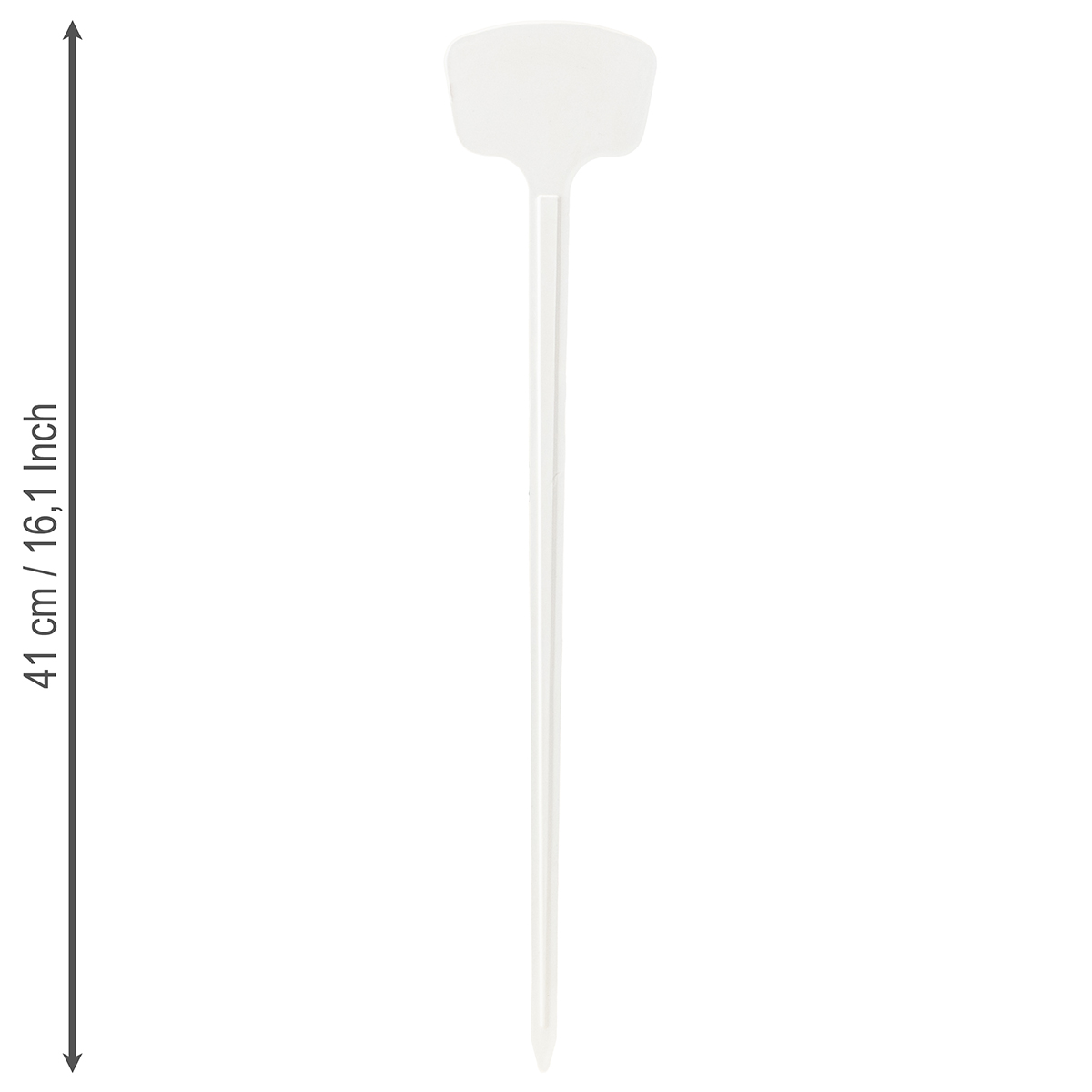 Over het algemeen is de plantpen ongeveer 41 centimeter lang: het te labelen gebied meet ongeveer 80 bij 50 millimeter en de staaflengte is ongeveer 36 centimeter. Je krijgt het plantenteken in een pakket van 10. Bloemisten gebruiken graag de langgesteelde bloempluggen bij het prijzen: plak eenvoudig een prijsetiket en plaats het prijskaartje in de juiste bloemenemmer of plantenbak!