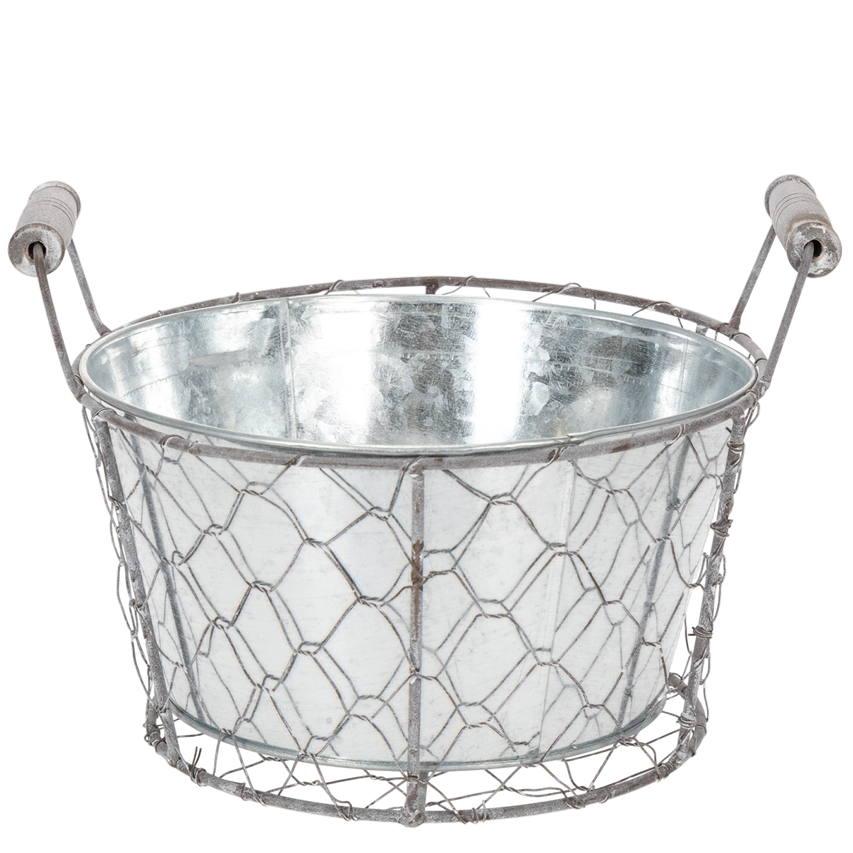 Plantenmand met inzetstuk, draadmand, plantenbak, lentezilver, witgeverfd, shabby chic, Ø22cm H17.5cm