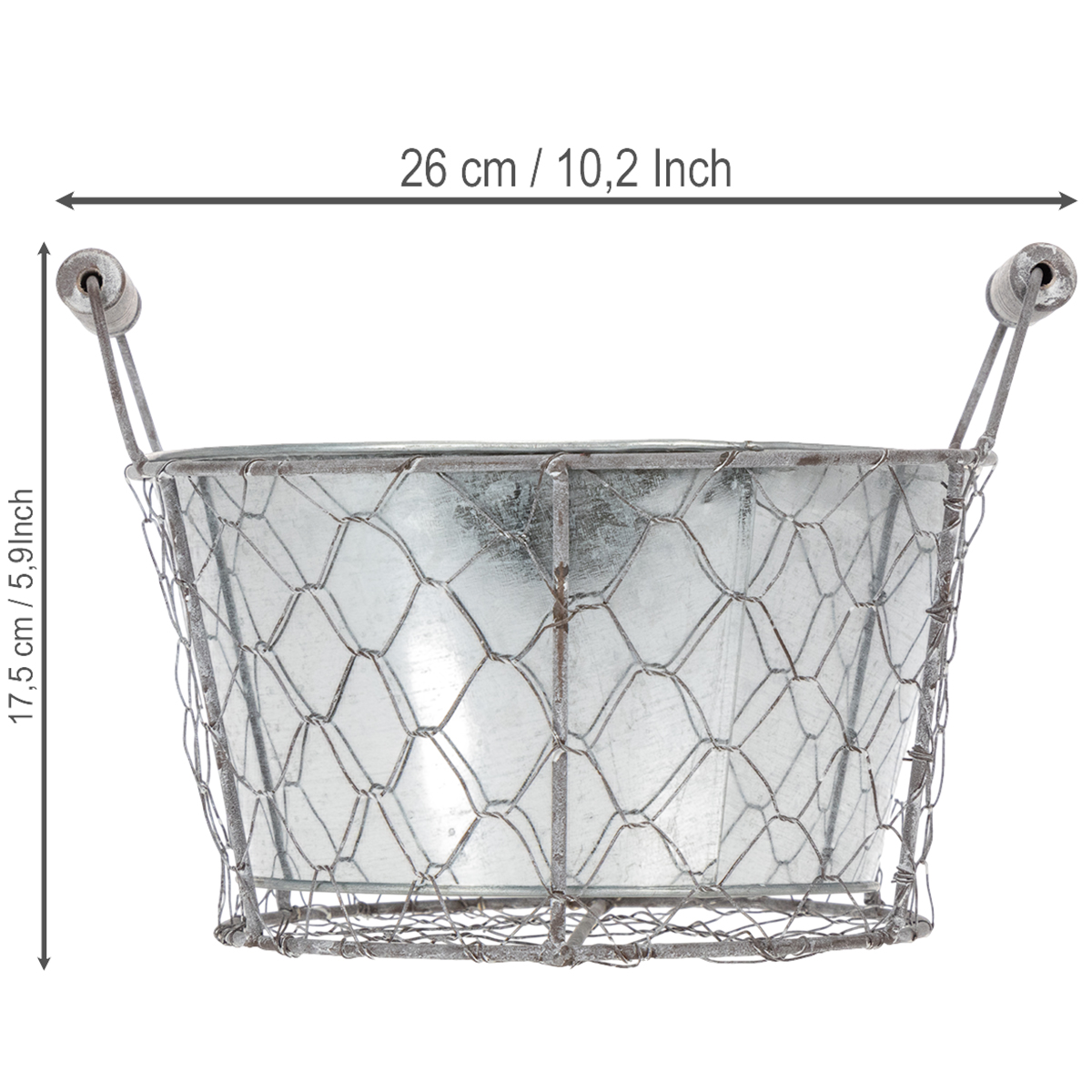 De decoratieve draadmand is ook perfect te gebruiken als plantenbak in een landelijke stijl of als metalen decoratie voor feestelijke gelegenheden zoals een bruiloft in vintage-stijl.