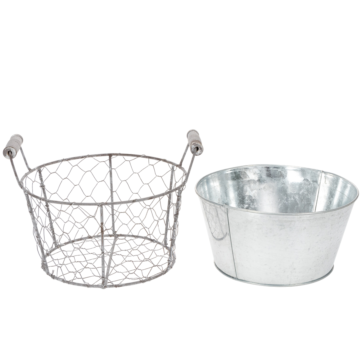 De draadmand heeft een uitneembare metalen schaal die je samen met de mand of apart kunt gebruiken voor je bloemstukken. Als je van plan bent bloemen in de mand te planten, is het raadzaam om de metalen schaal van tevoren met aluminiumfolie te bekleden. Dit voorkomt dat aarde en water er later uit lekken. Op deze manier is de mand ook ideaal als basis voor bloemstukken op je tafel. Voeg er wat bloemensteekschuim aan toe en je maakt prachtige lentedecoraties voor Pasen in deze metalen mand.