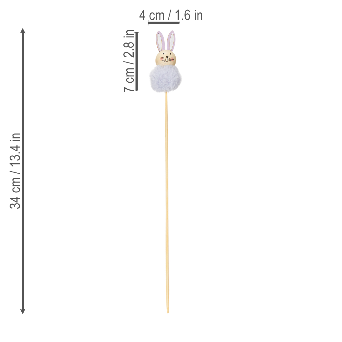 Deze paashaasjes op stokjes zijn een must-have voor iedereen die een persoonlijk en stijlvol tintje aan zijn paasdecoratie wil geven. Met een lengte van 34 cm en verkrijgbaar in een breed scala aan zachte pastelkleuren bieden ze eindeloze decoratiemogelijkheden. De pluche lijfjes van de konijntjes zijn gemaakt van hoogwaardige materialen die prettig aanvoelen en perfect passen bij hun natuurlijke uitstraling. De stevige houten stok biedt ideale ondersteuning en maakt ze ongelooflijk veelzijdig. Van nostalgische landelijke stijl tot moderne tafeldecoraties, deze figuurtjes passen in elke sfeer.