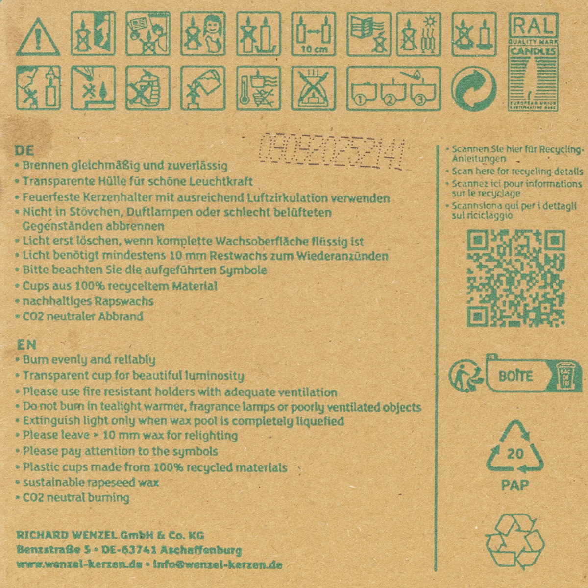 Productnaam: Pure Nature Lights theelichtjes, brandtijd 10 uur, kaarsen van koolzaadwas, 8 stuks