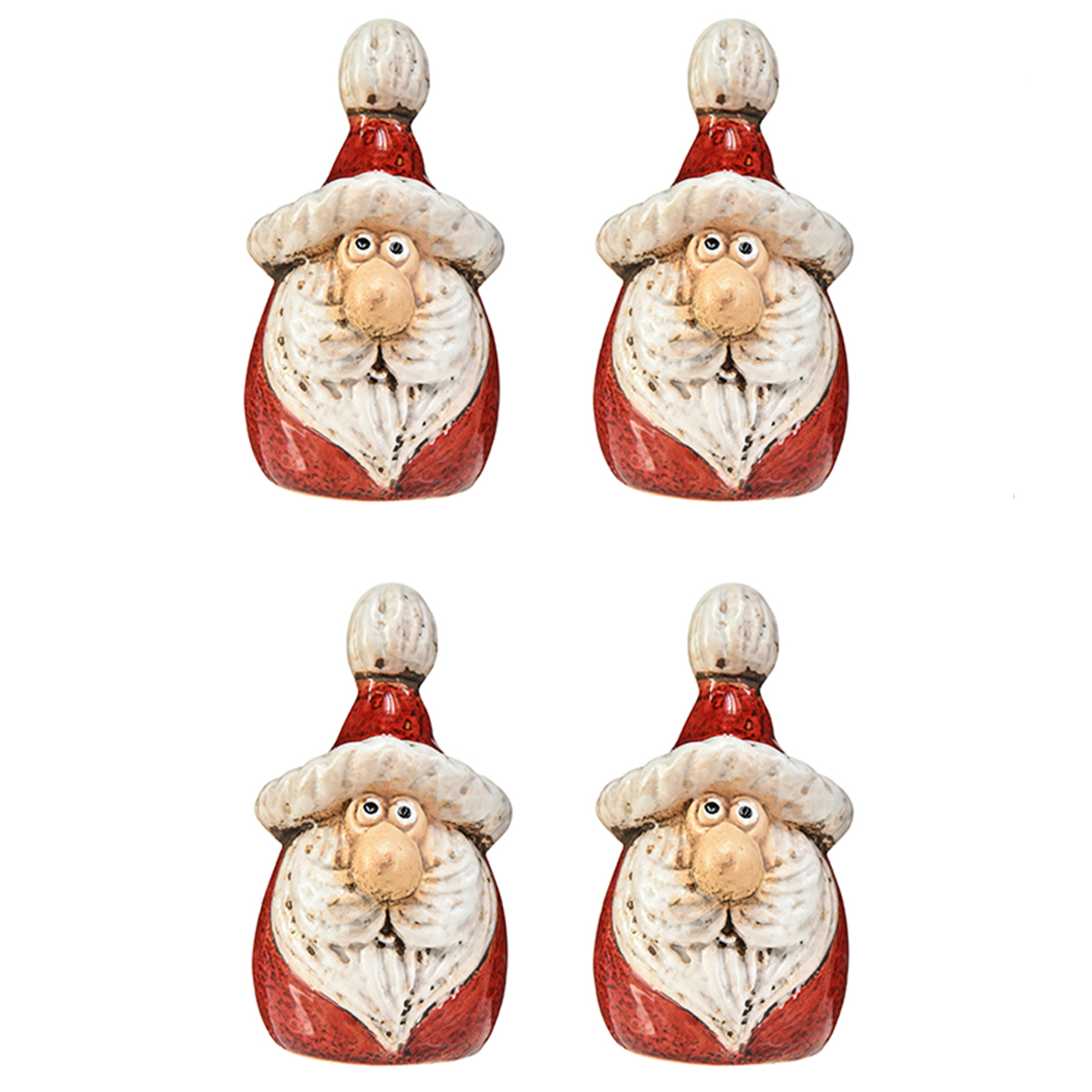 Schattig kerstmanfiguurtje van keramiek, rood en wit, 10 cm - perfecte kerstversiering - 4 stuks
